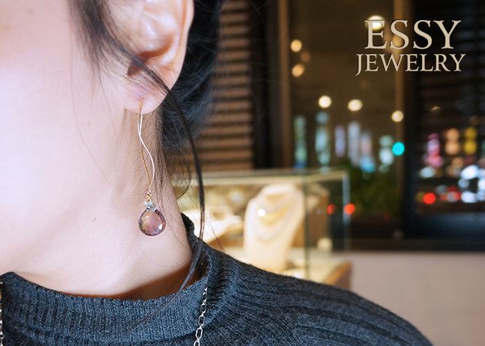 氣質優雅 紫黃晶雙邊流蘇 K金耳環