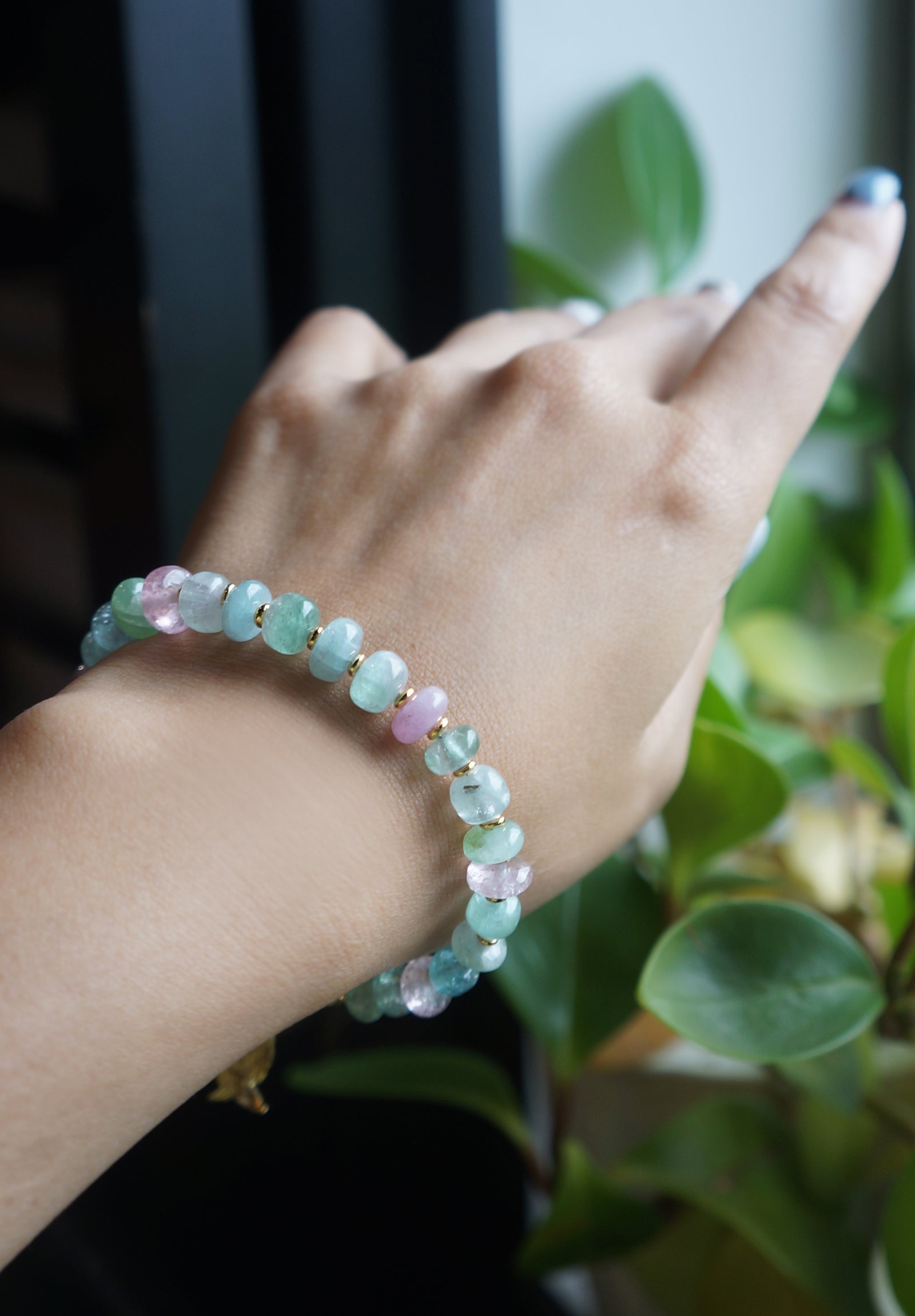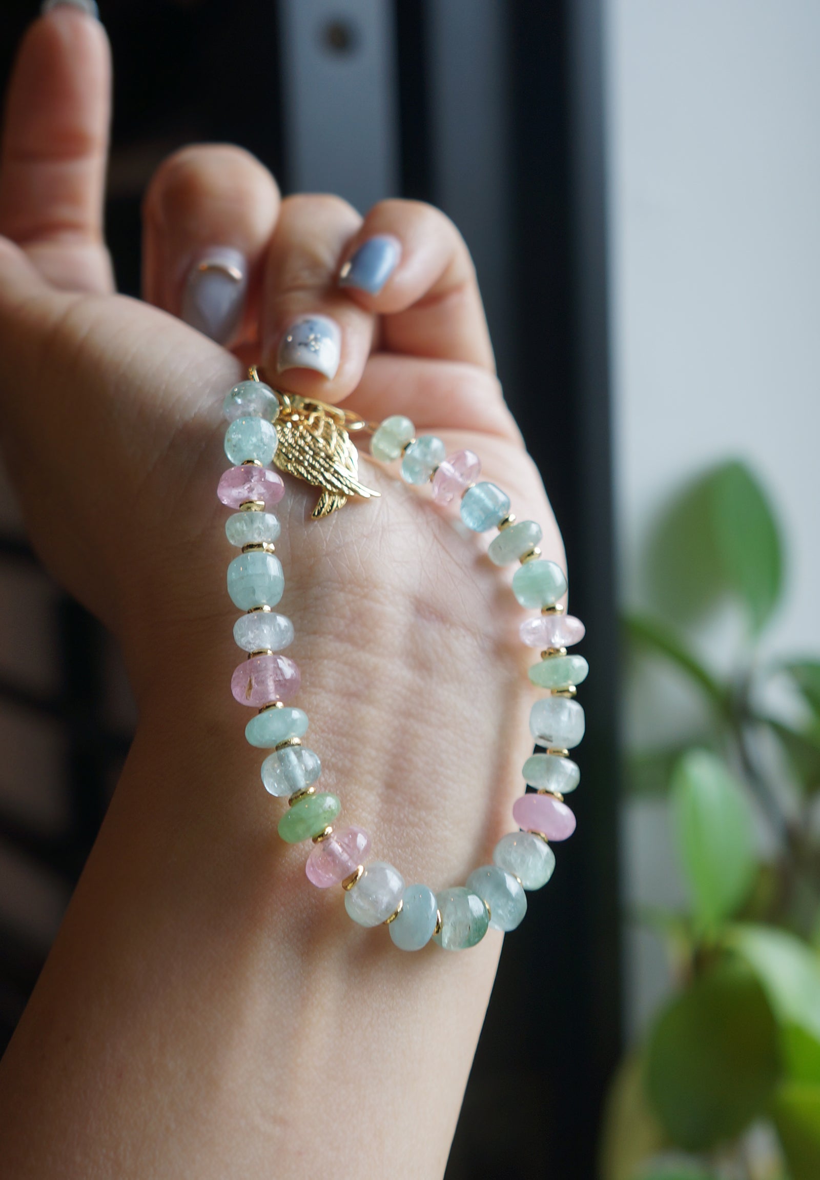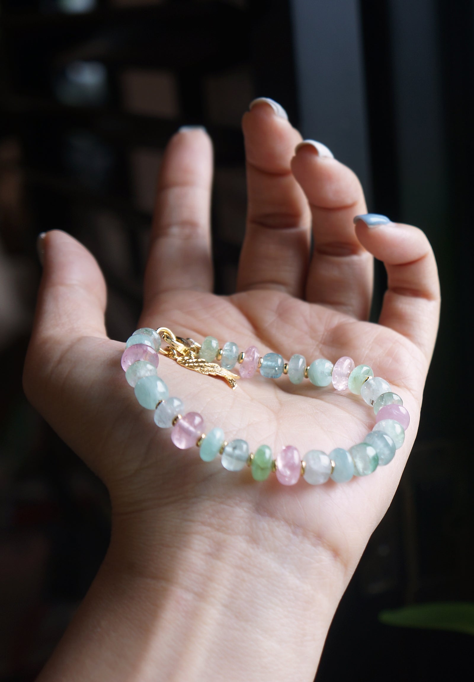 仙仙的粉/藍色系的碧璽塔珠