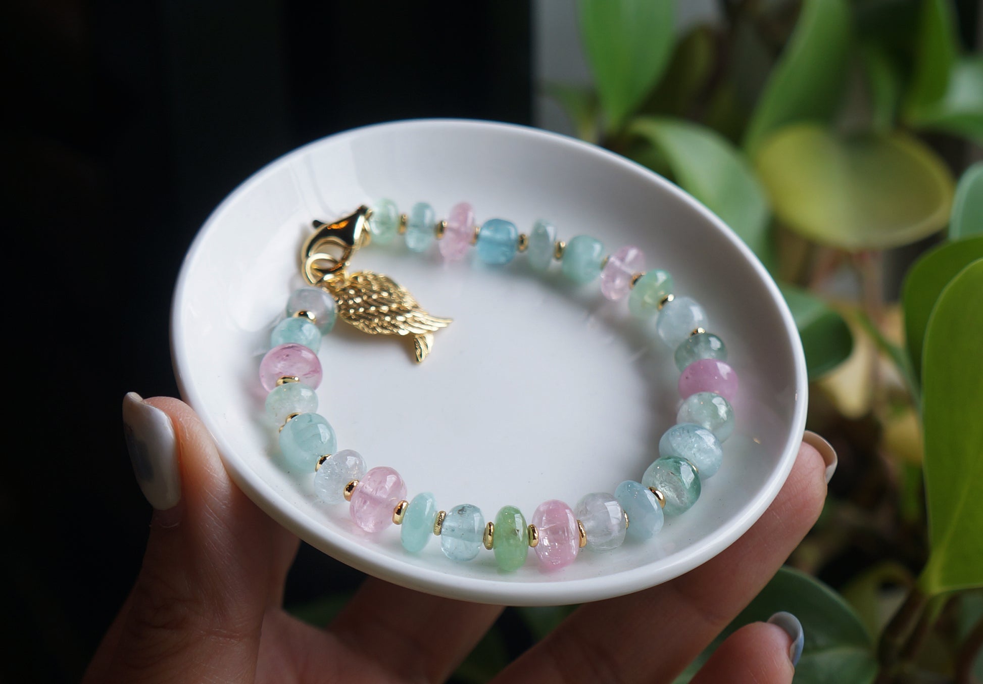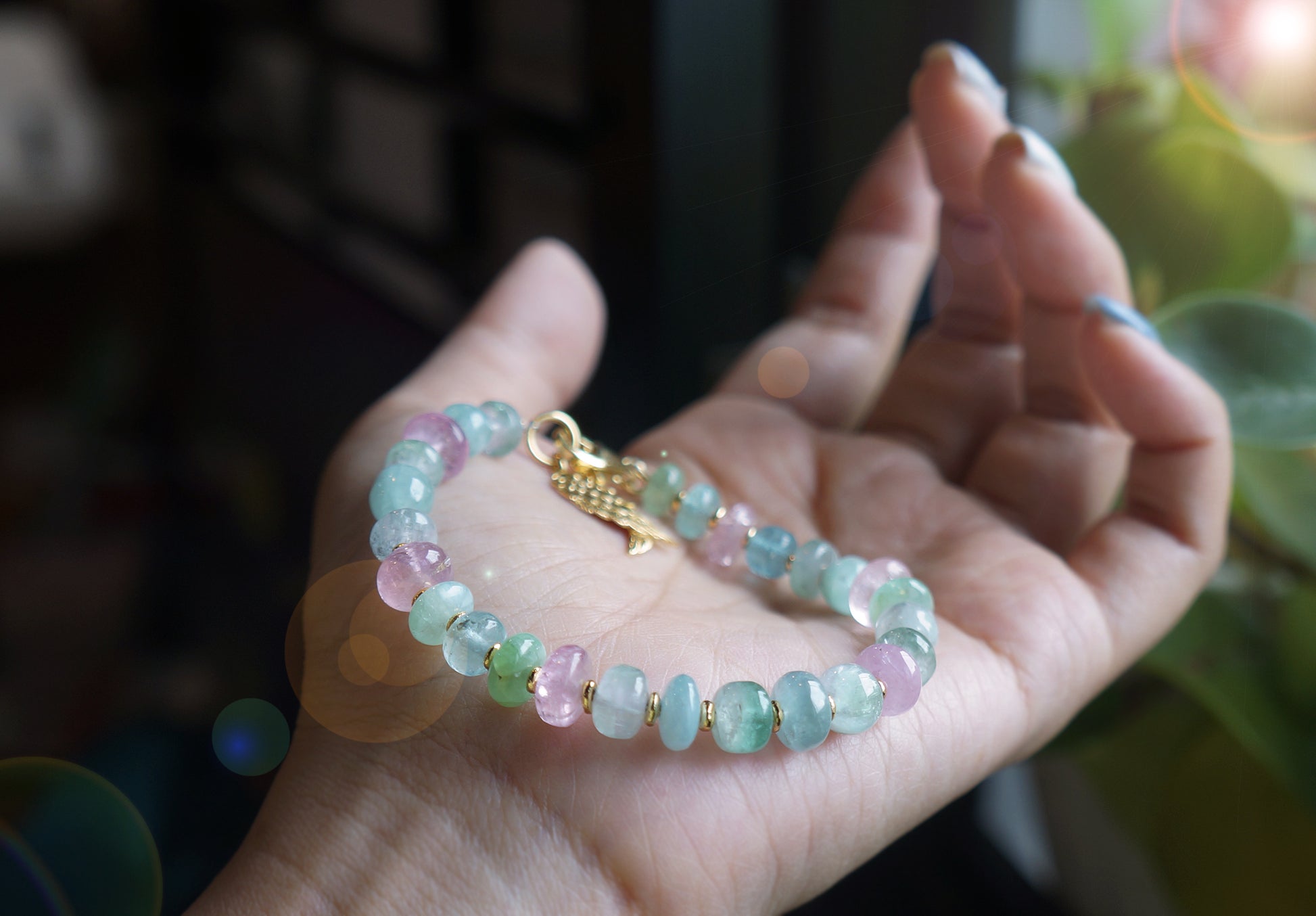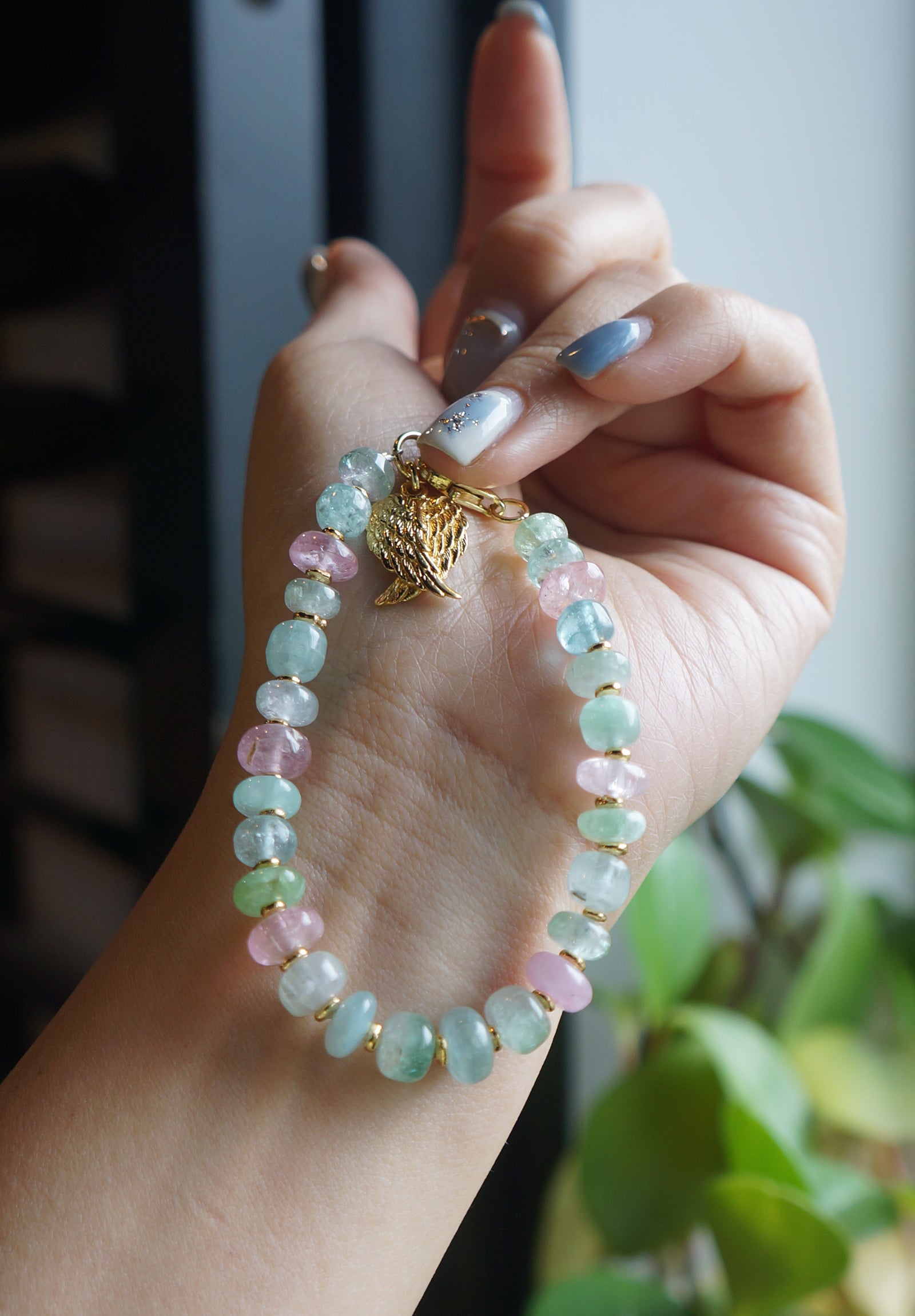 仙仙的粉/藍色系的碧璽塔珠