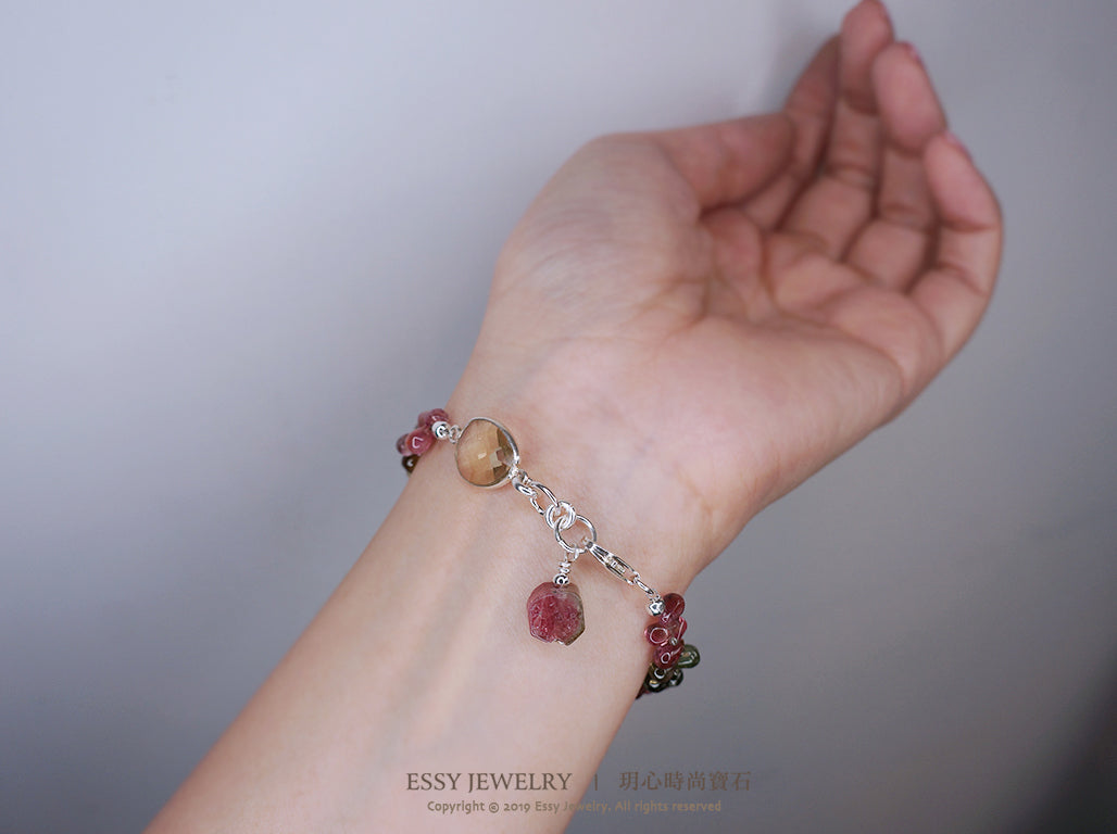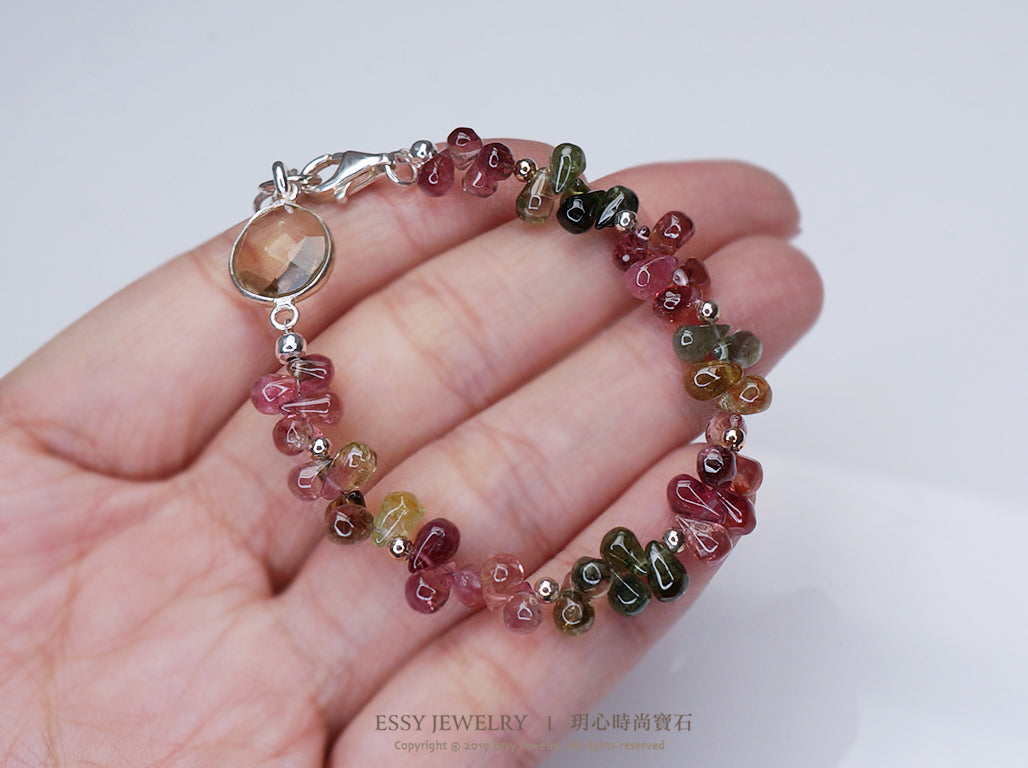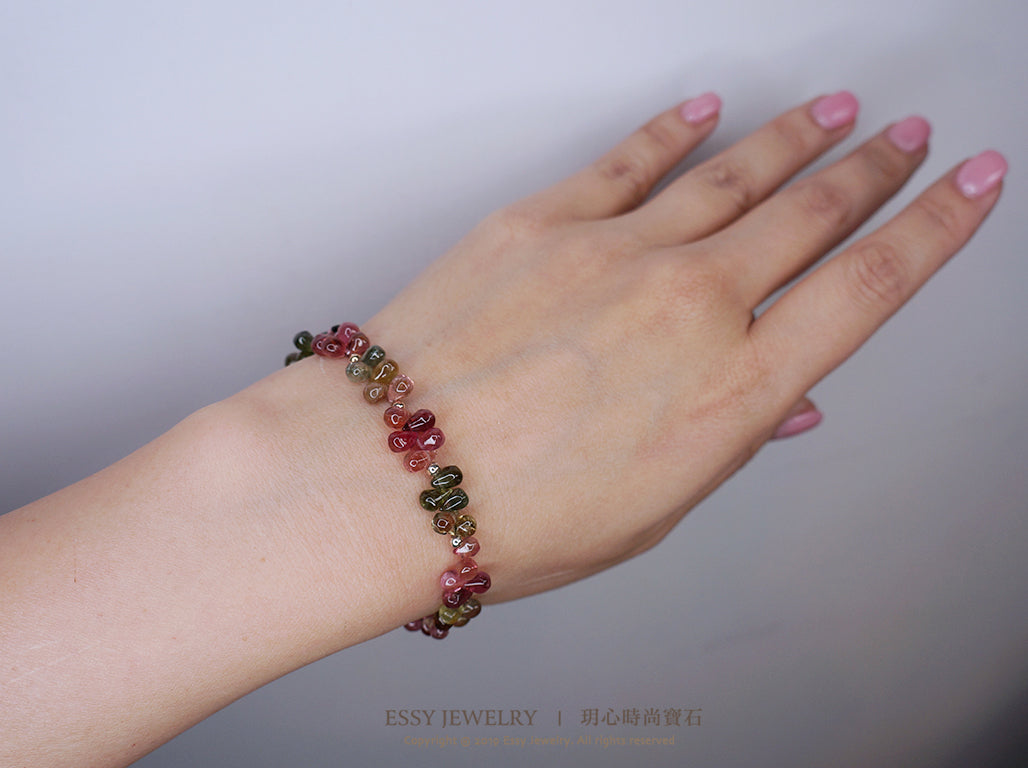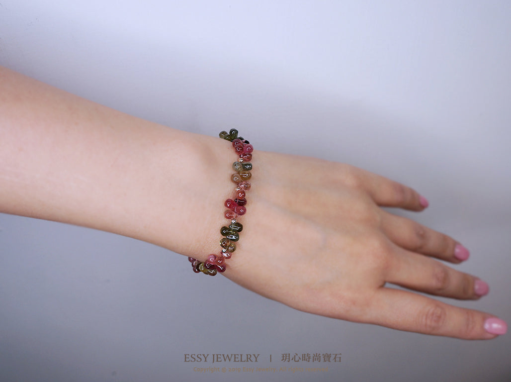 胖水滴碧璽手鍊,晶瑩剔透的質地,顏色嬌豔閃閃動人。