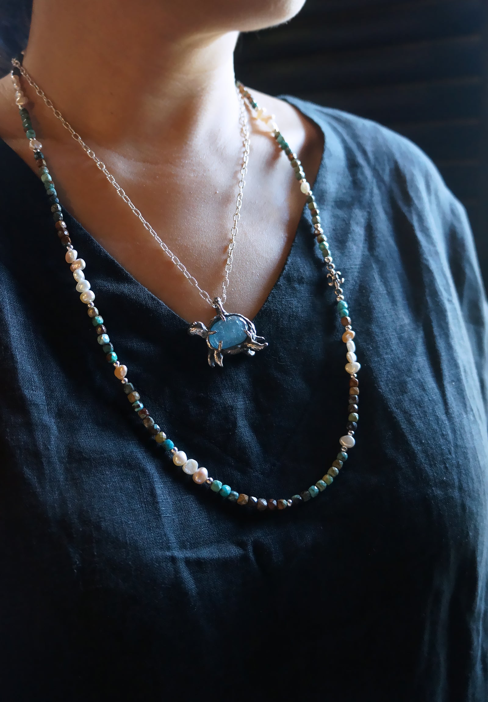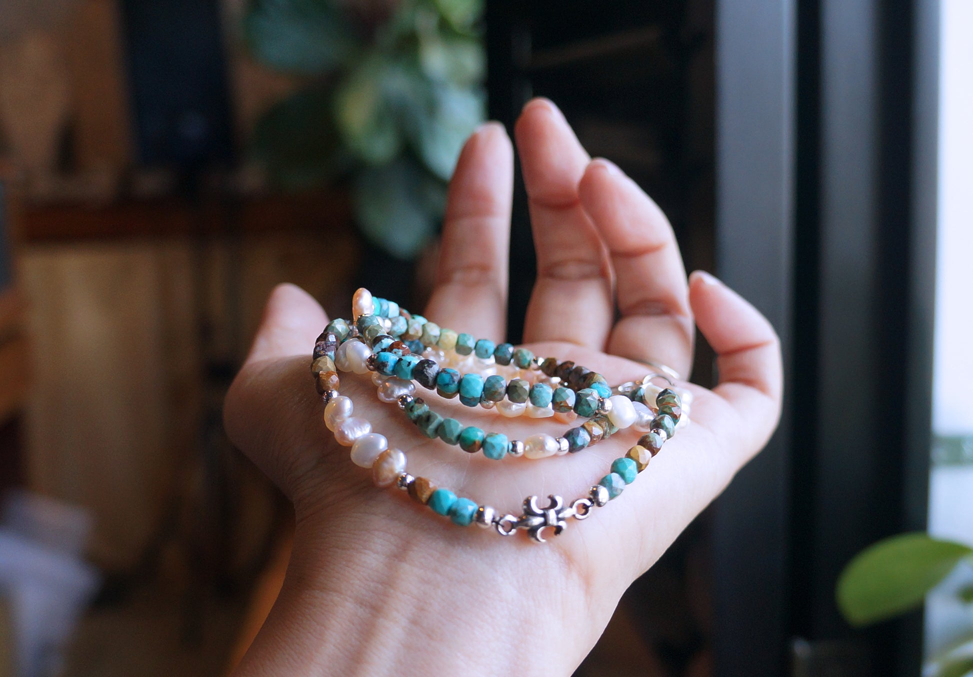 - 尺寸 / Size:綠松石約 4 mm | 珍珠約 6 mm