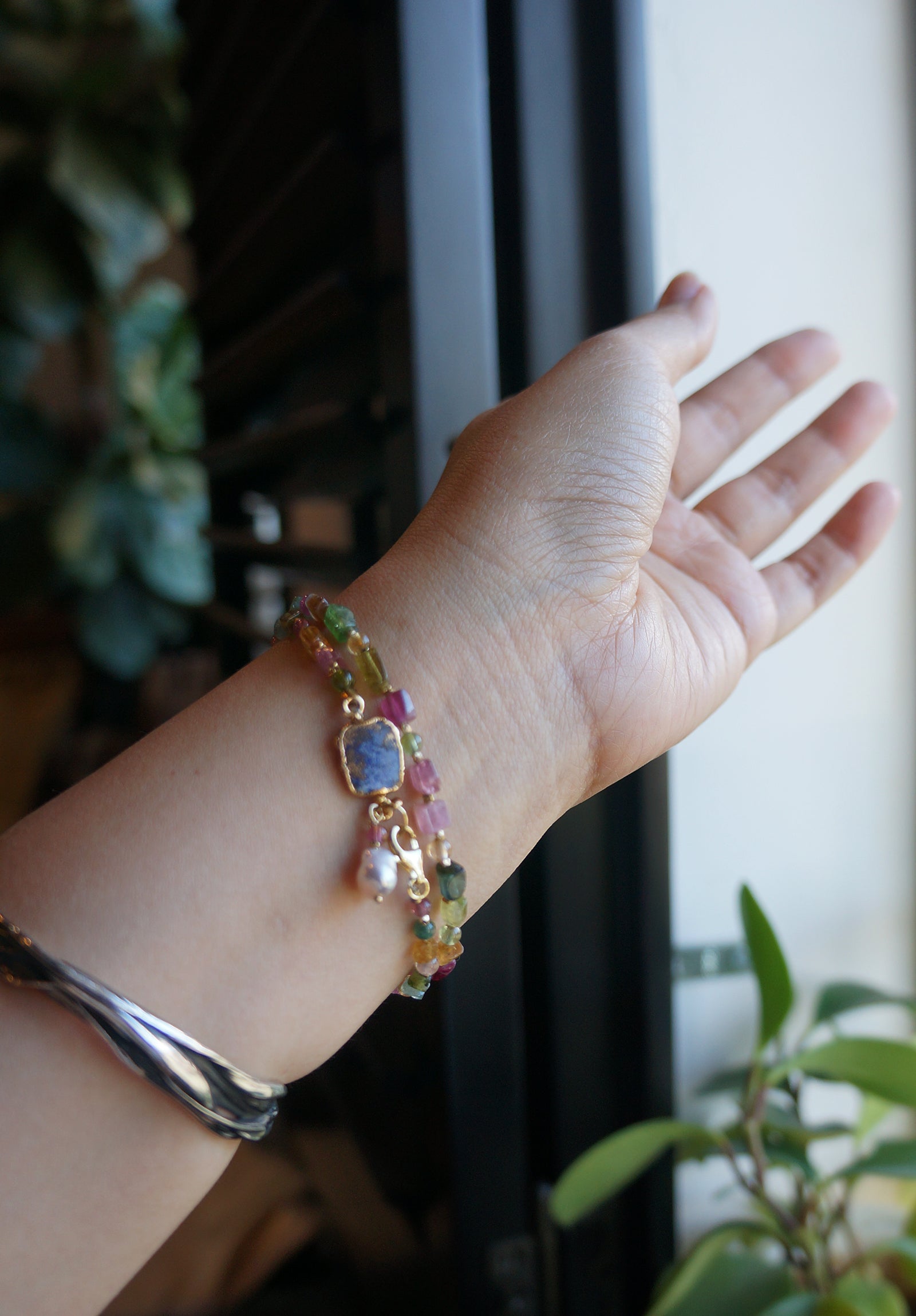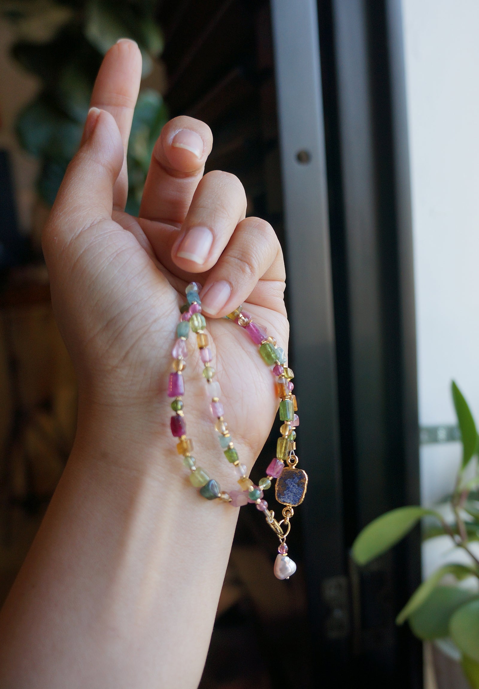 小方柱碧璽|兩圈長手鏈 - E092402b