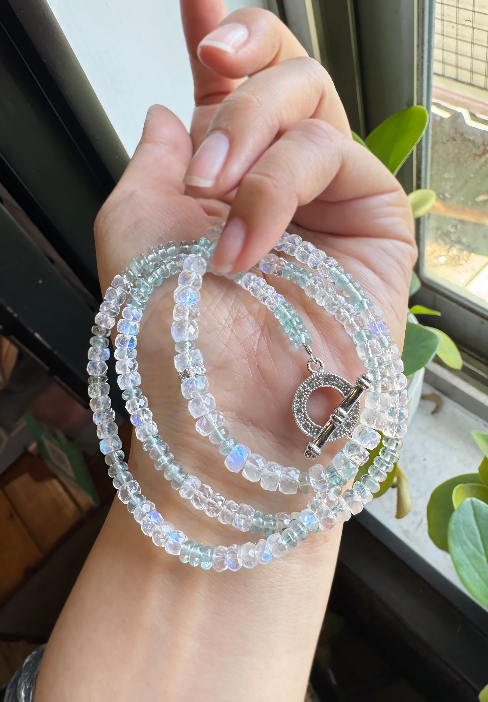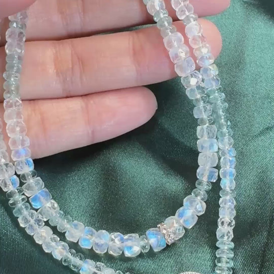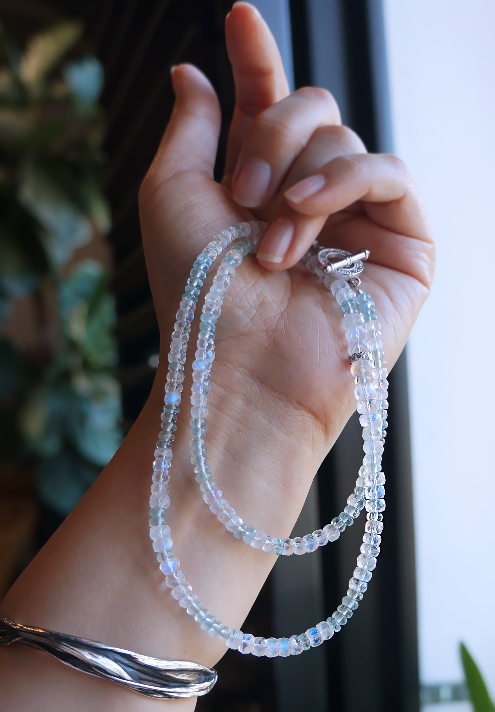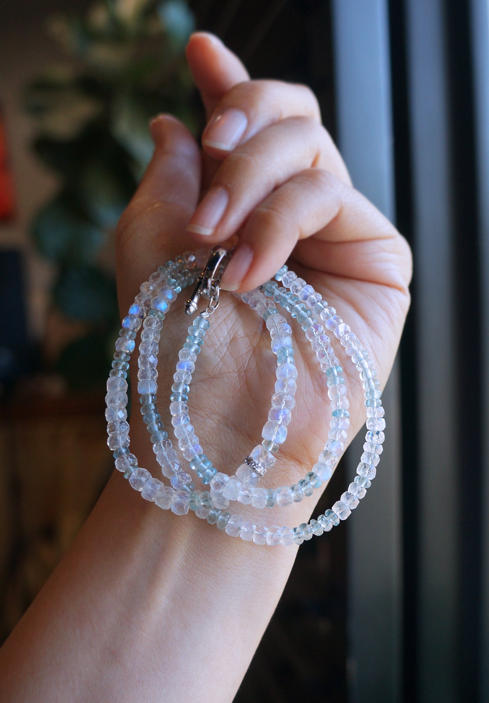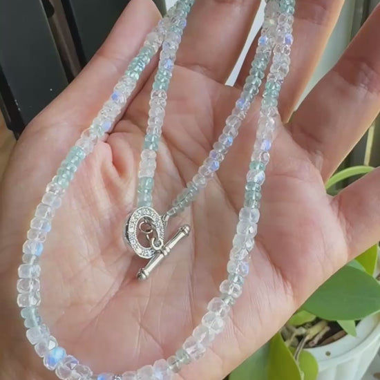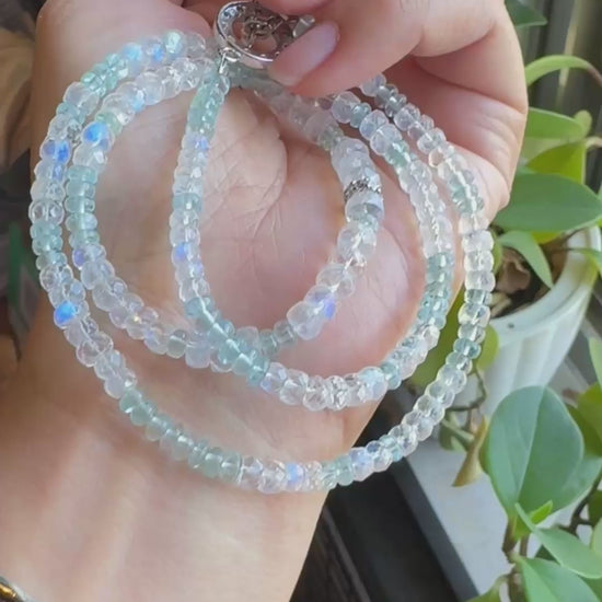 極品美藍暈|月光石 海水藍寶 長手鏈兩用