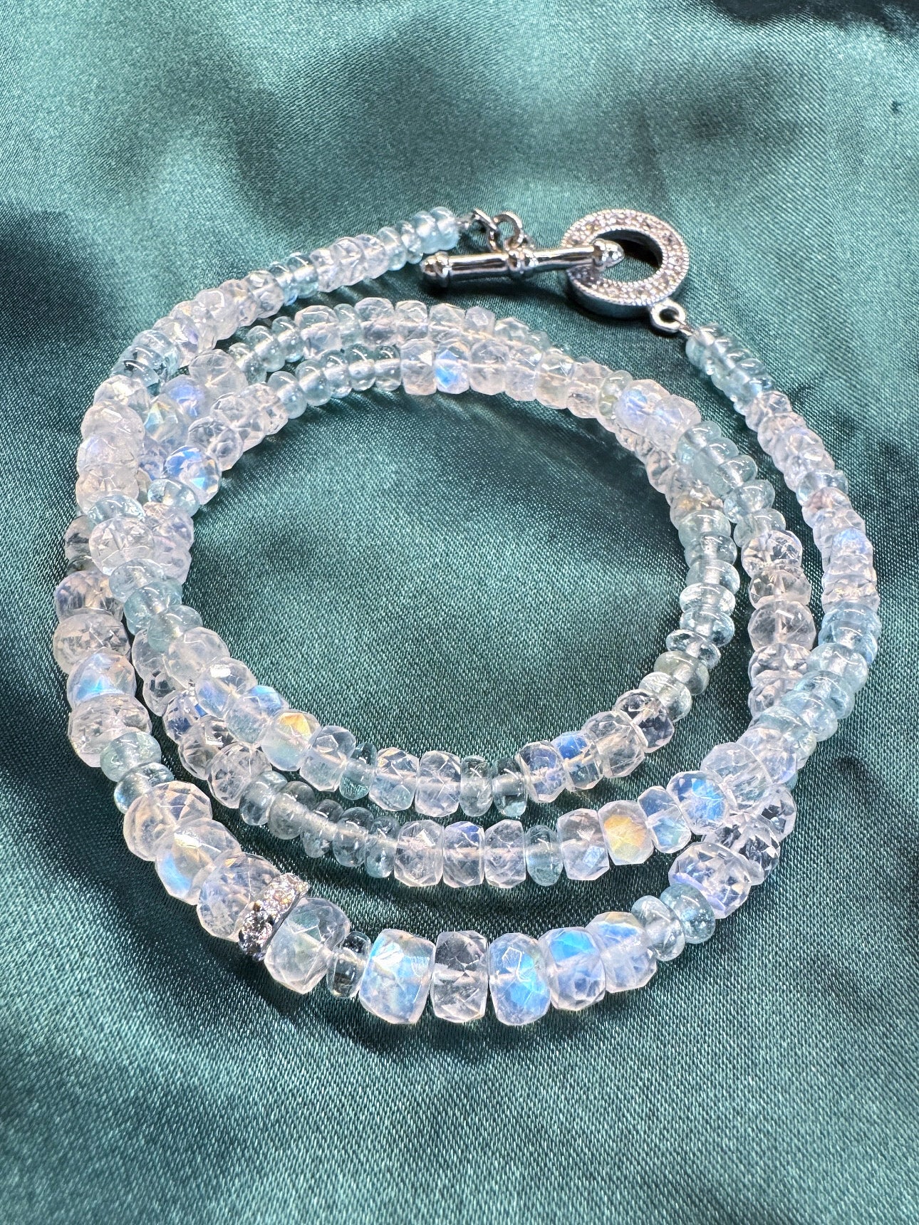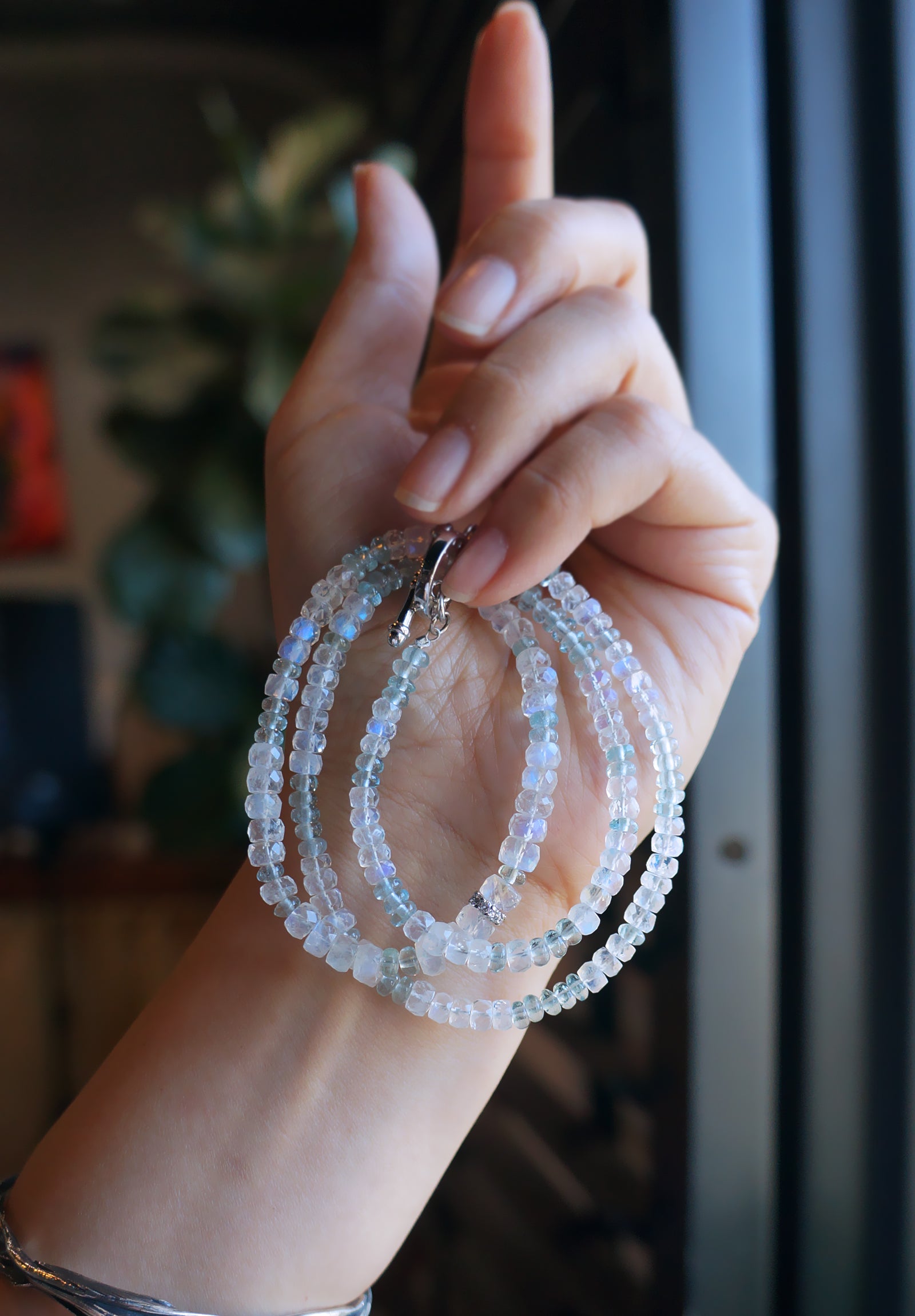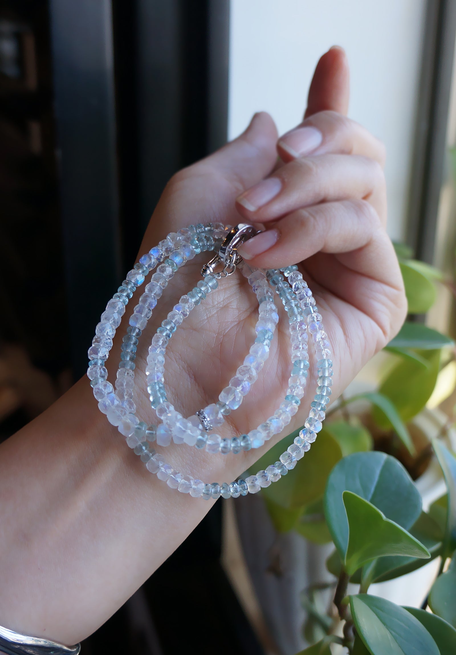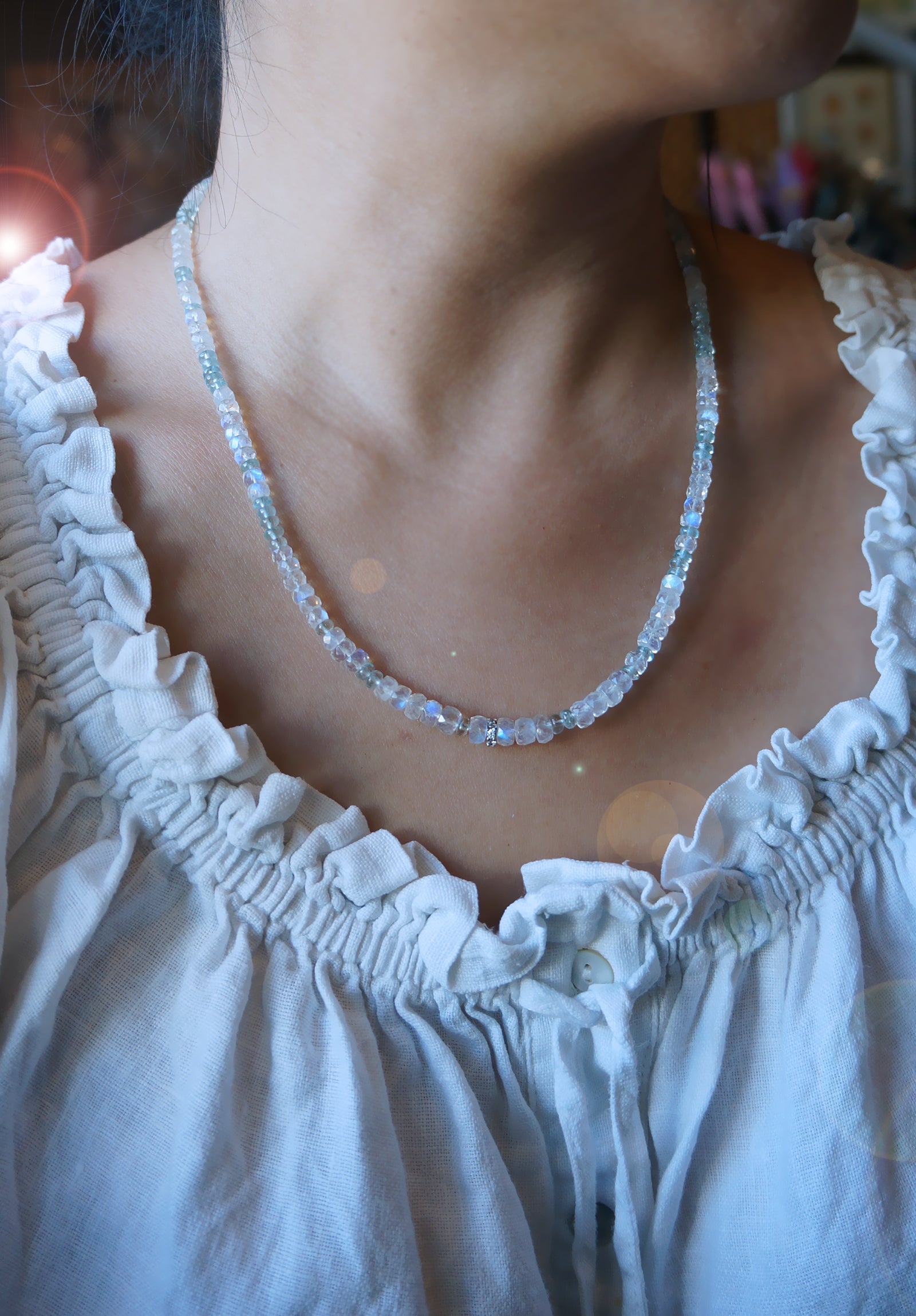 極品美藍暈|月光石 海水藍寶 長手鏈兩用