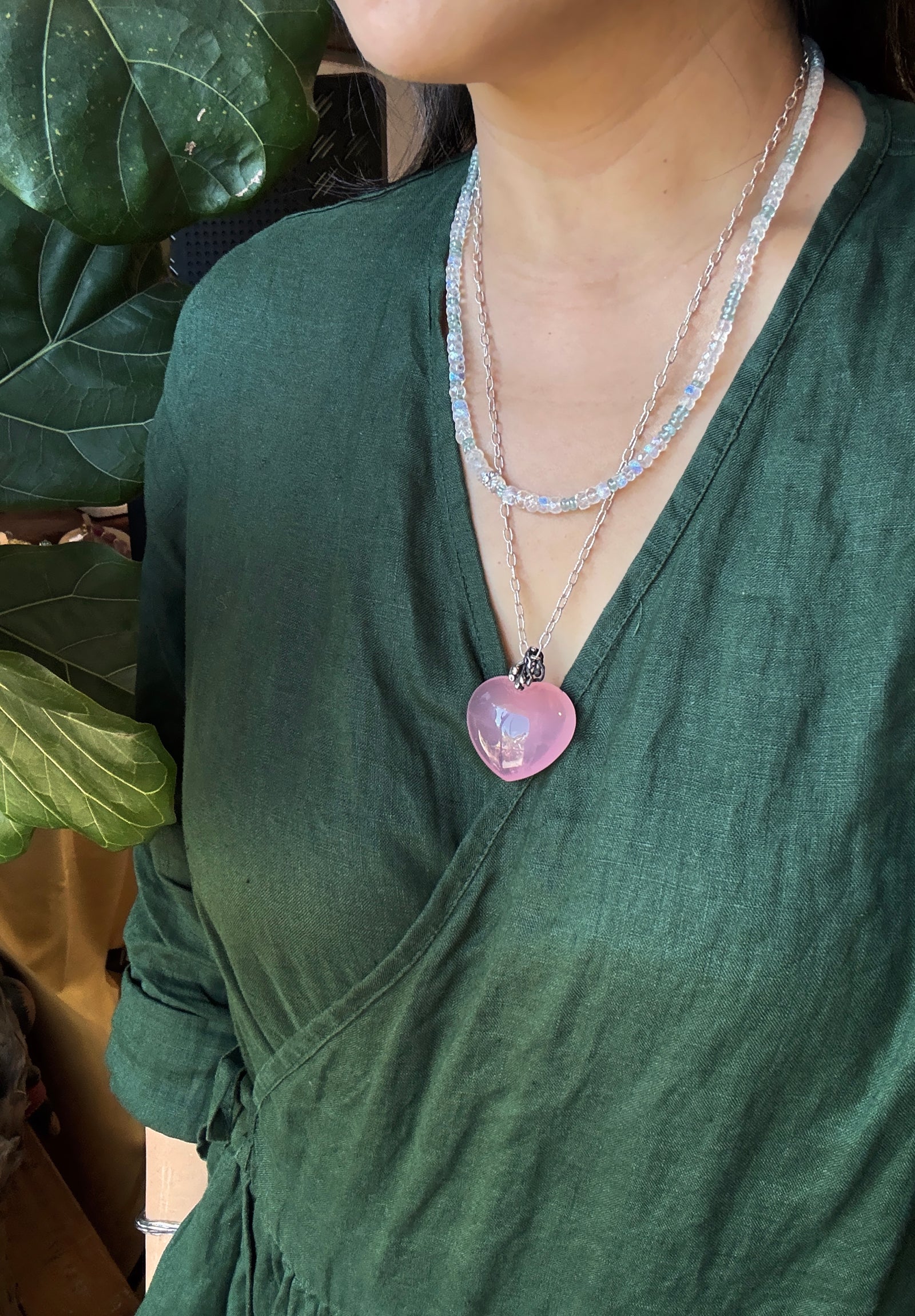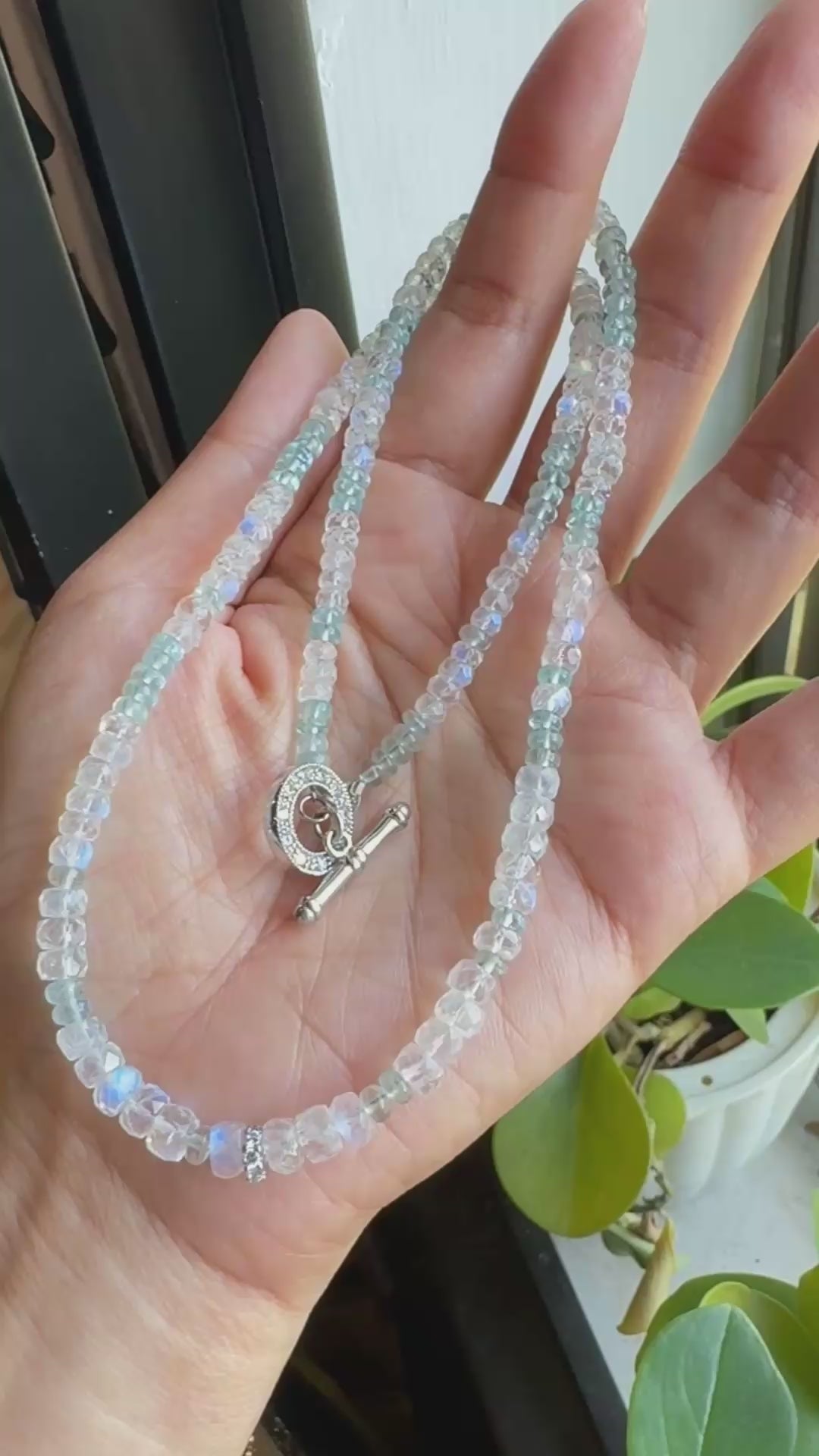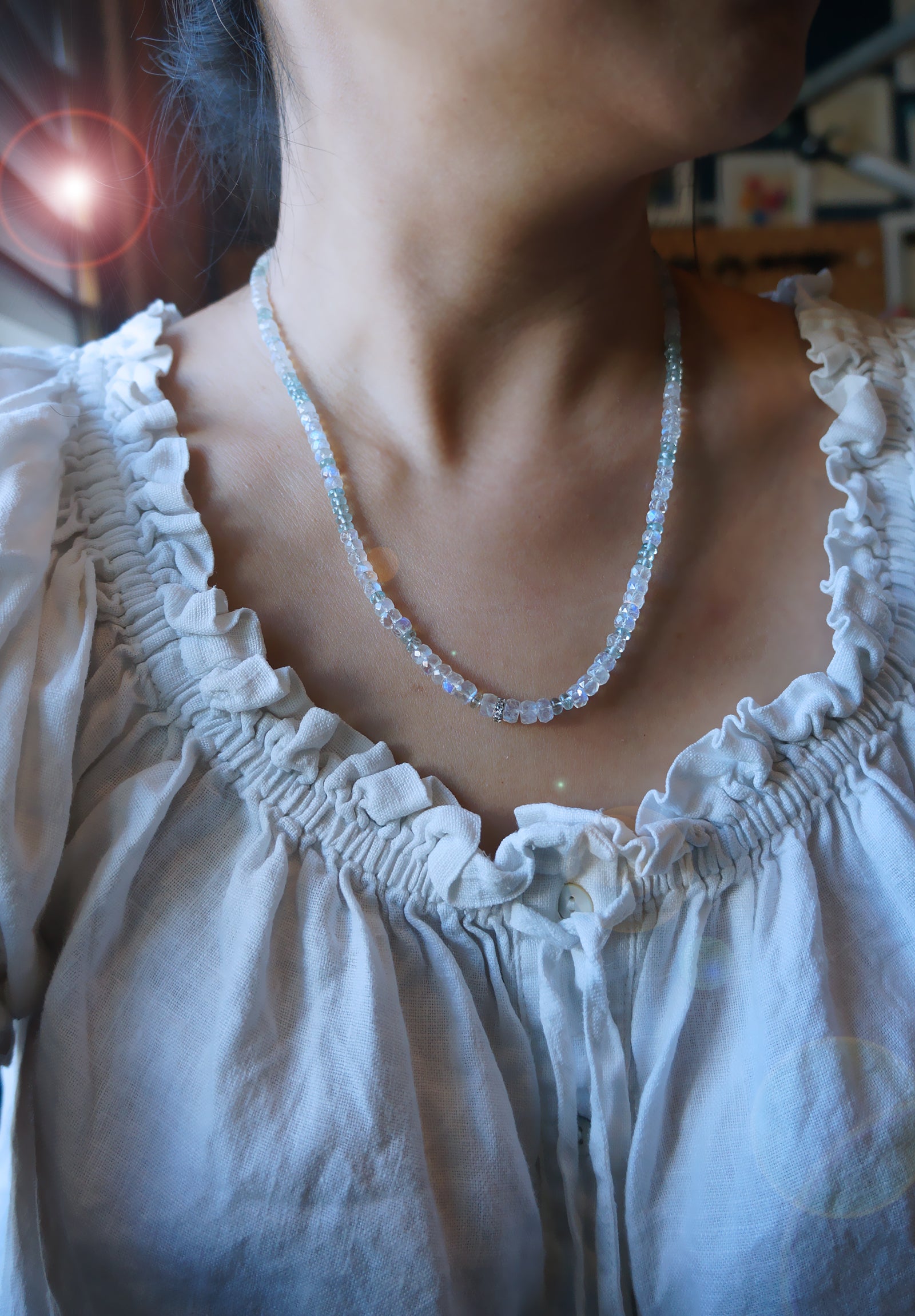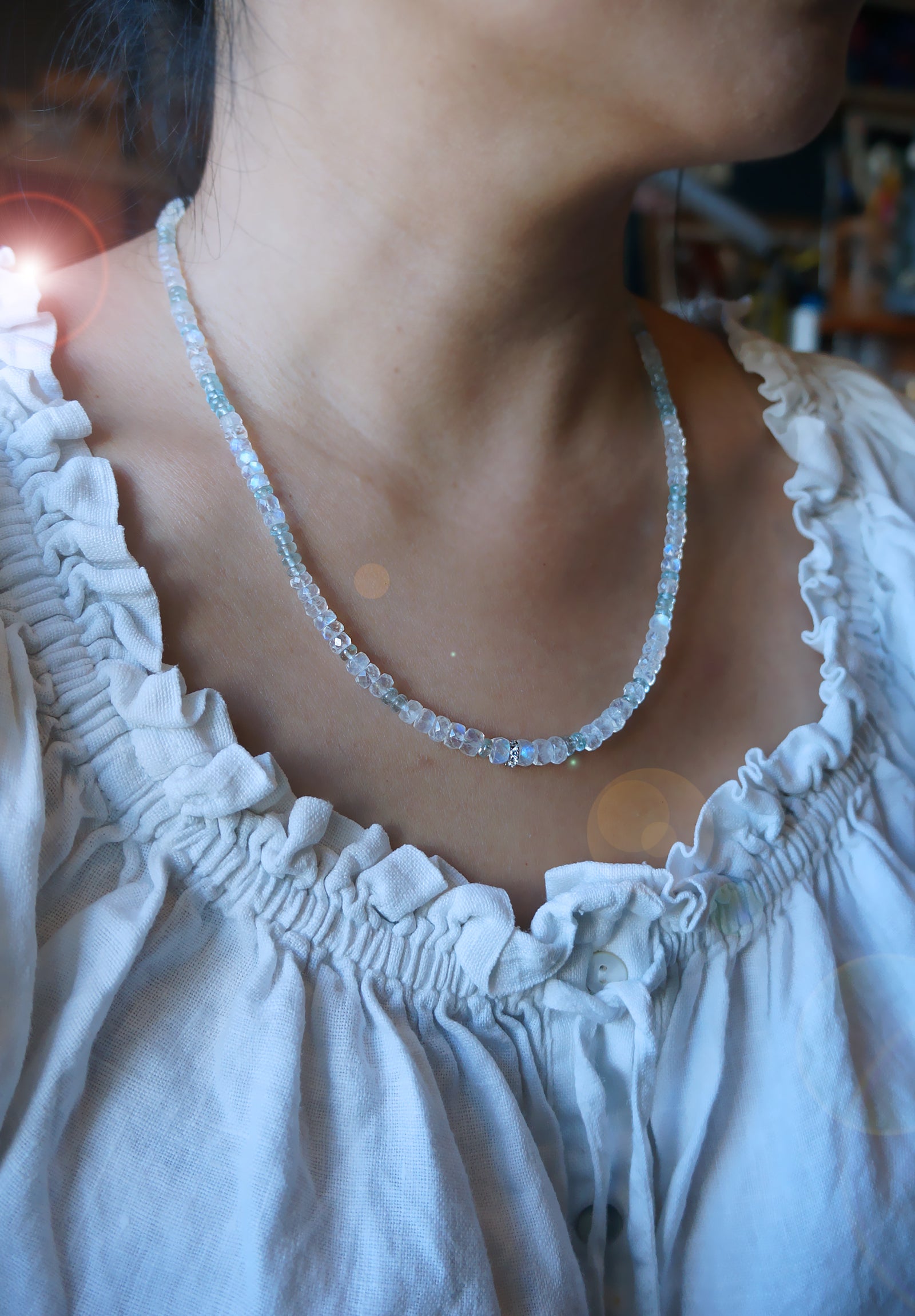 極品美藍暈|月光石 海水藍寶 長手鏈兩用