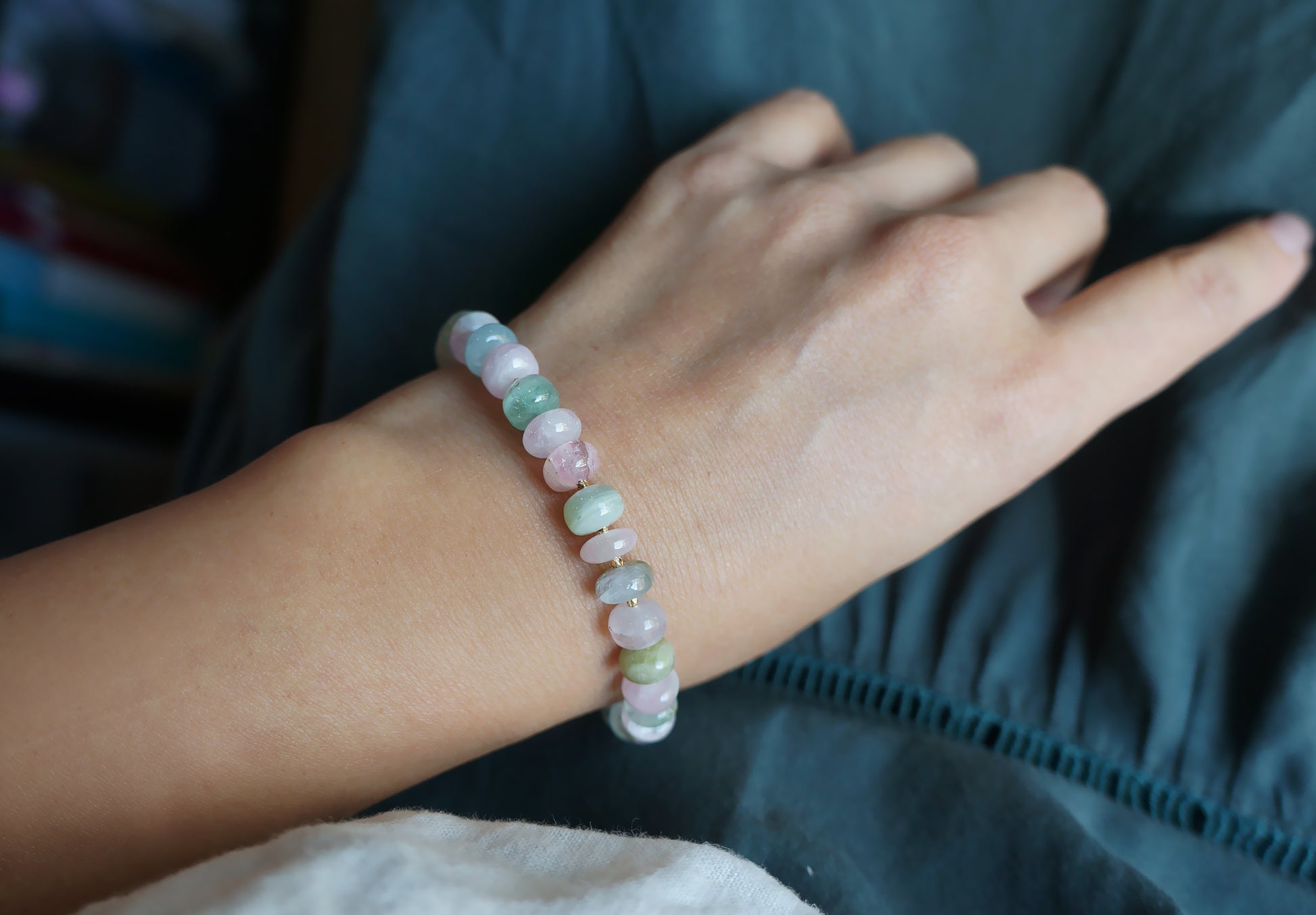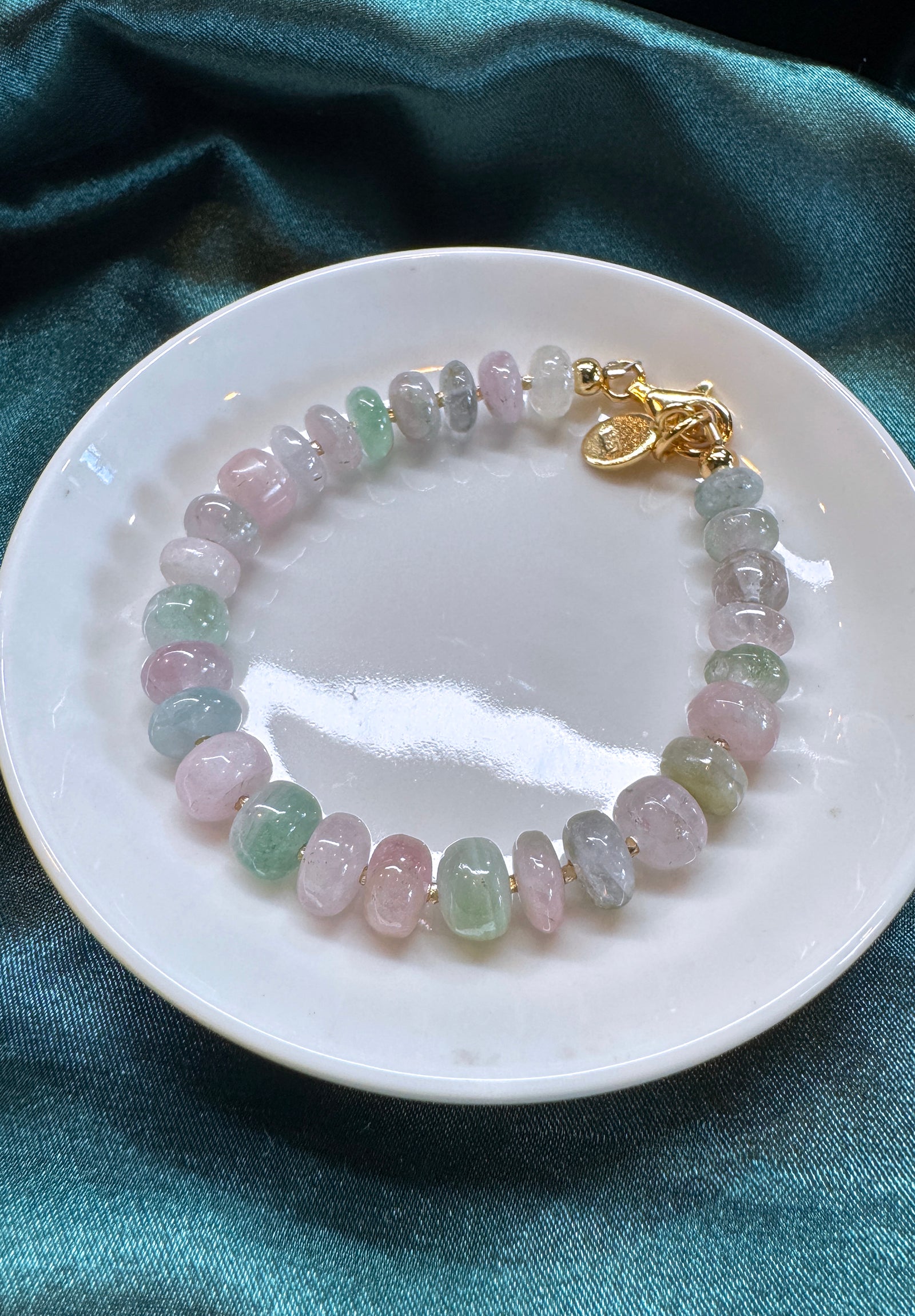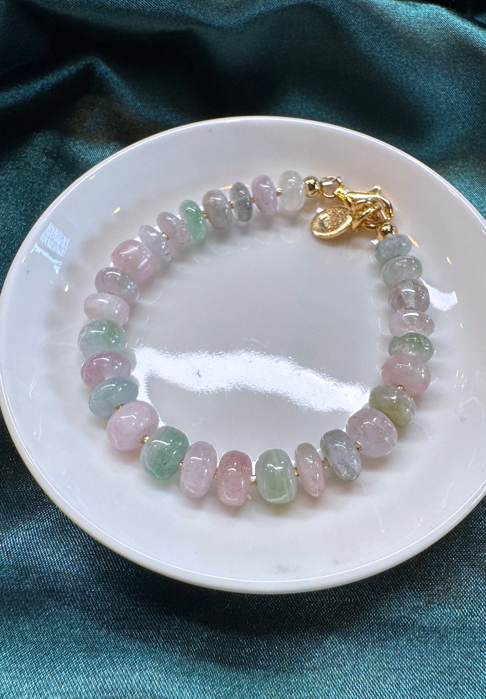 清新優雅|阿富汗彩碧璽塔珠手鍊 E101604