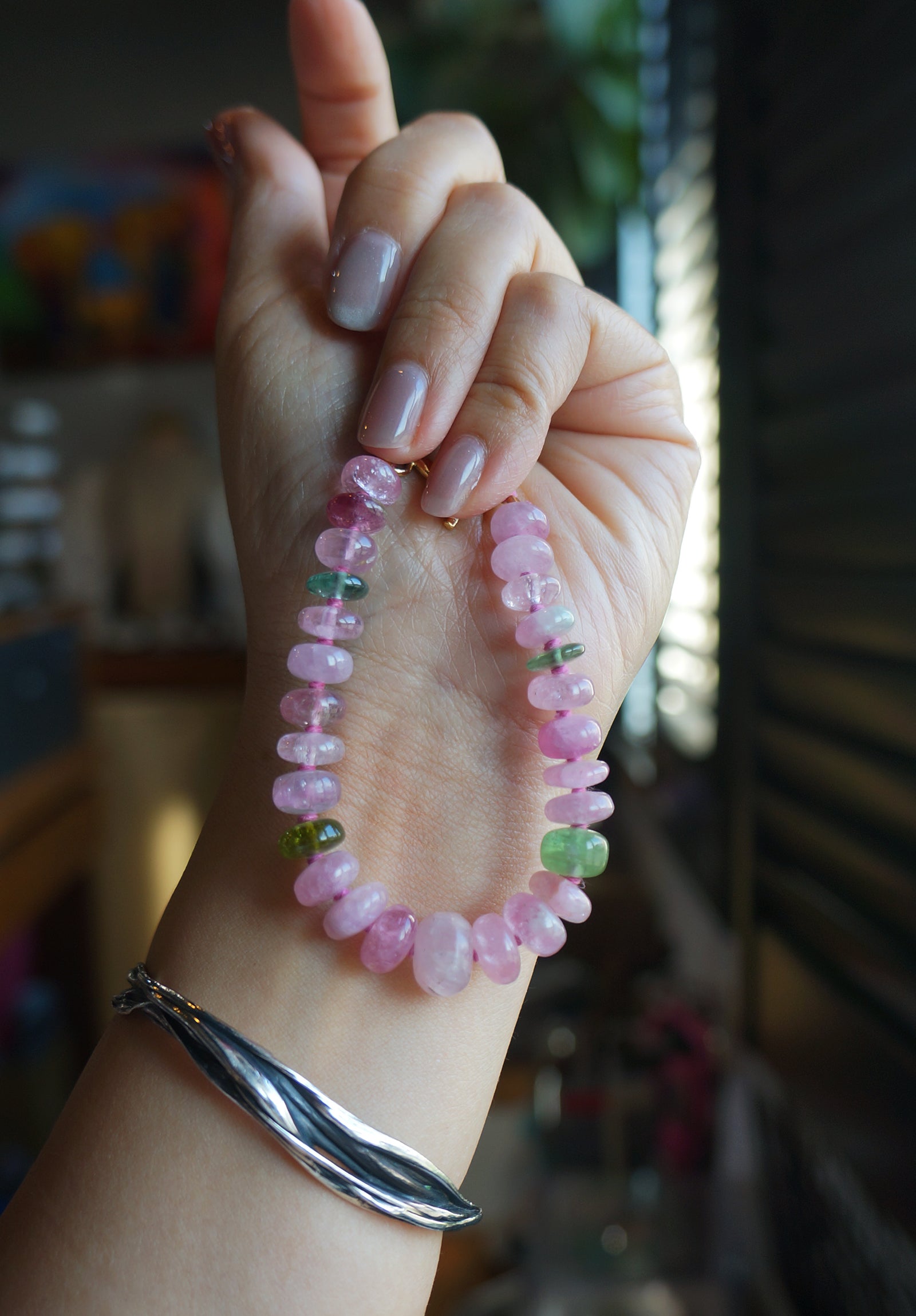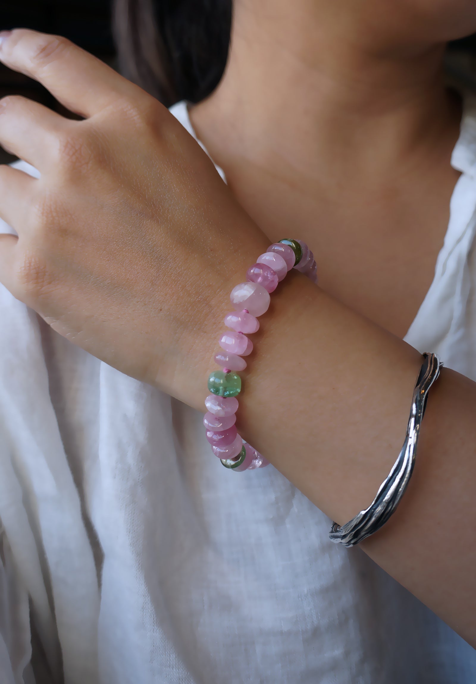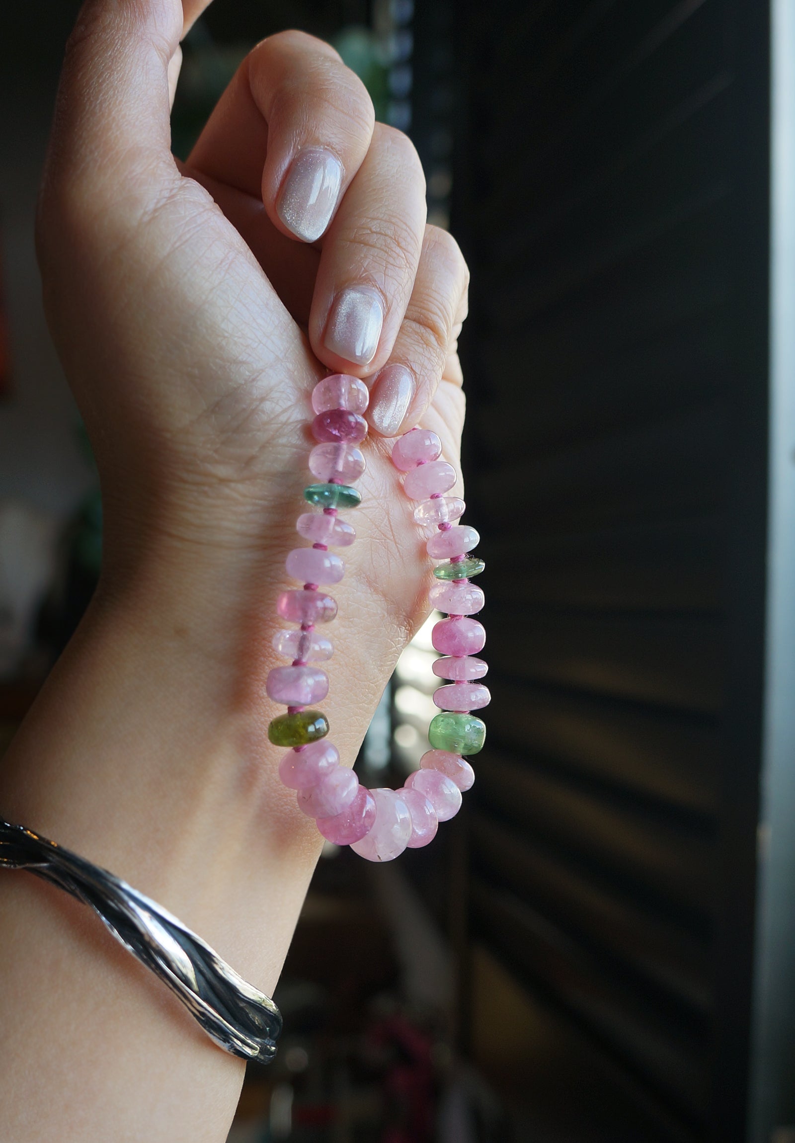 清新優雅|阿富汗粉碧塔珠手鍊 E101603