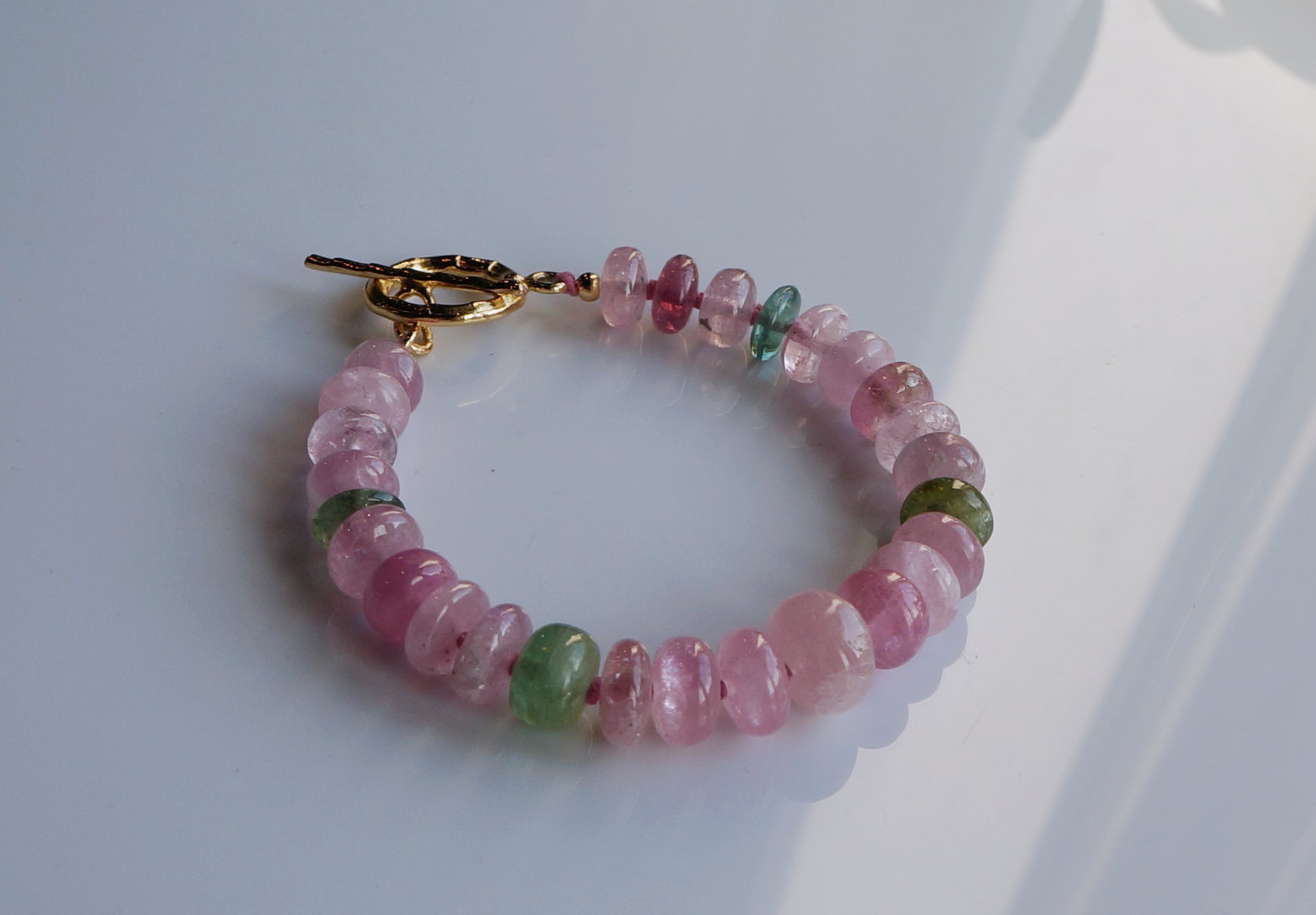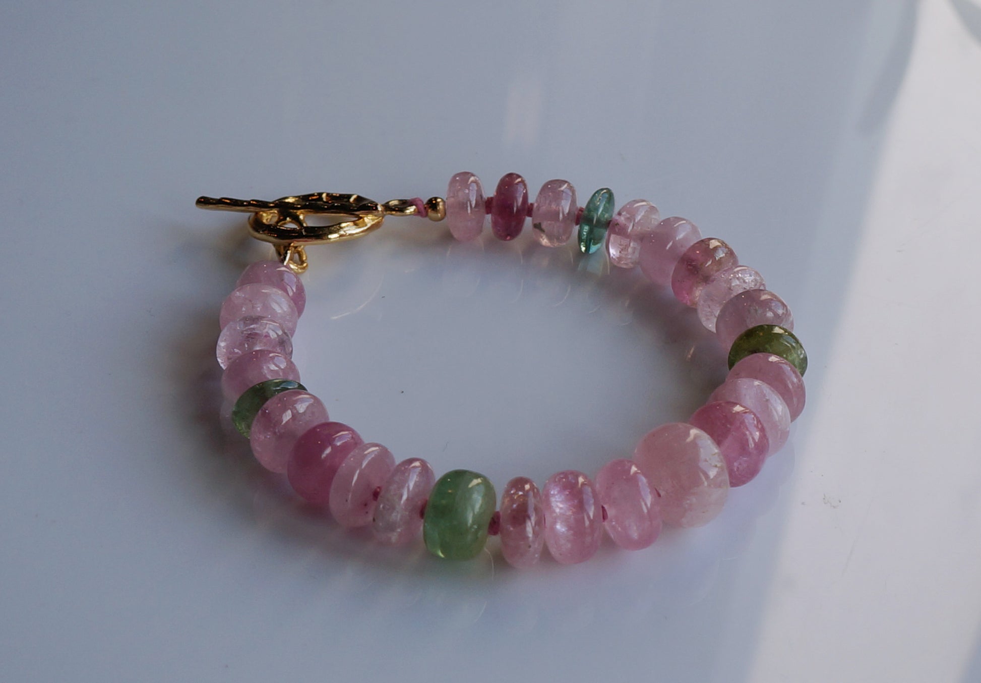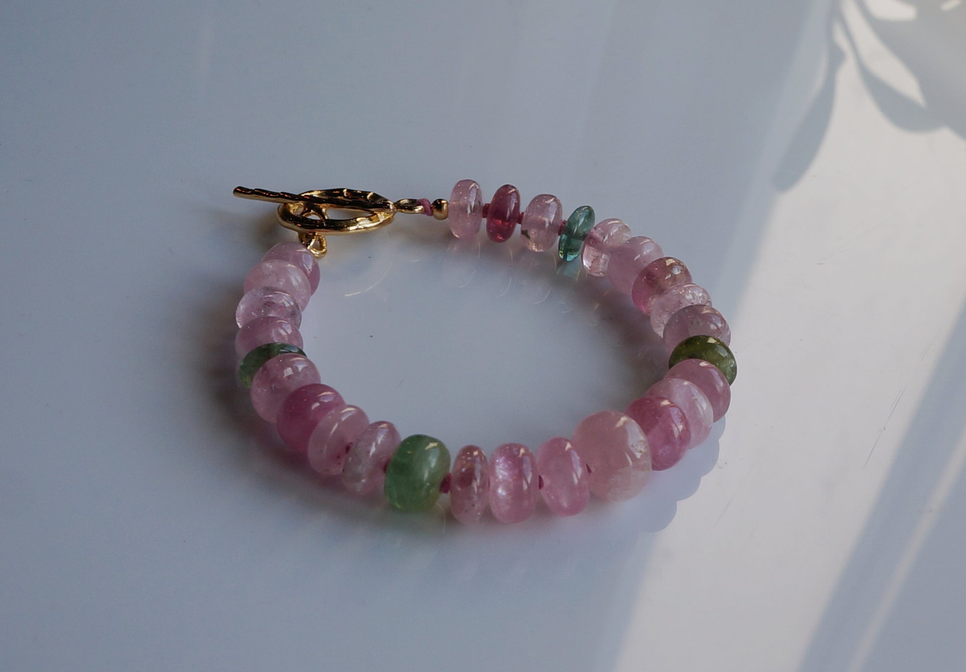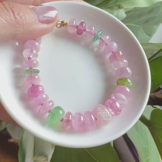 清新優雅|阿富汗粉碧塔珠手鍊 E101603