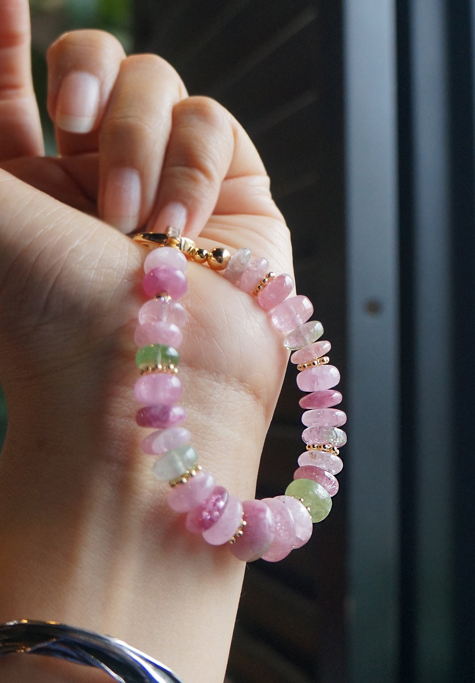 清新優雅|阿富汗粉碧塔珠手鍊 E101605