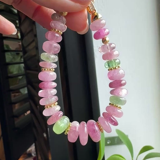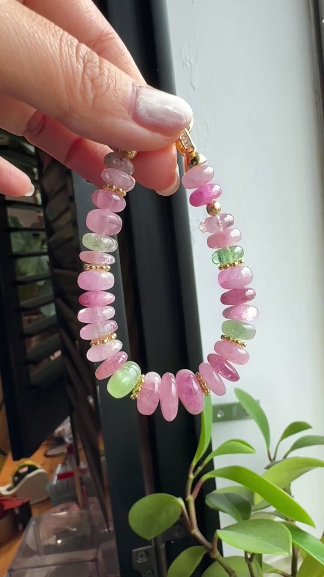 超美的阿富汗粉碧塔珠手鏈,散發著柔美迷人的光澤