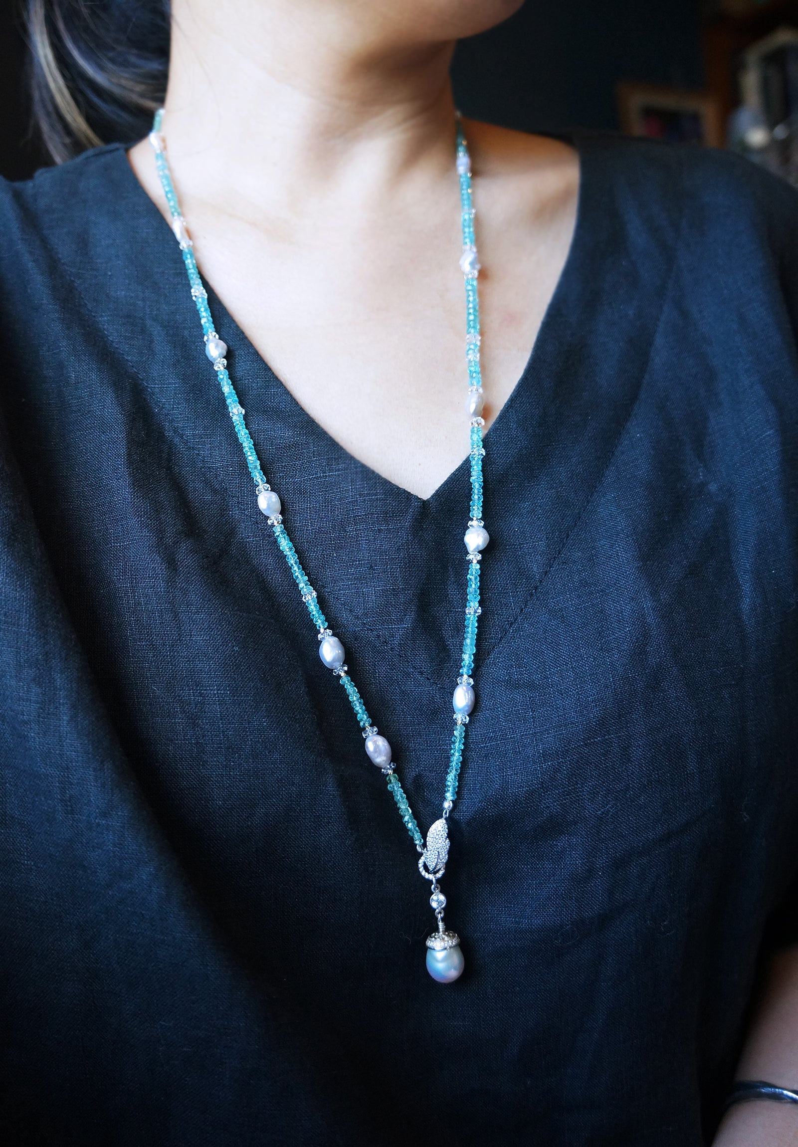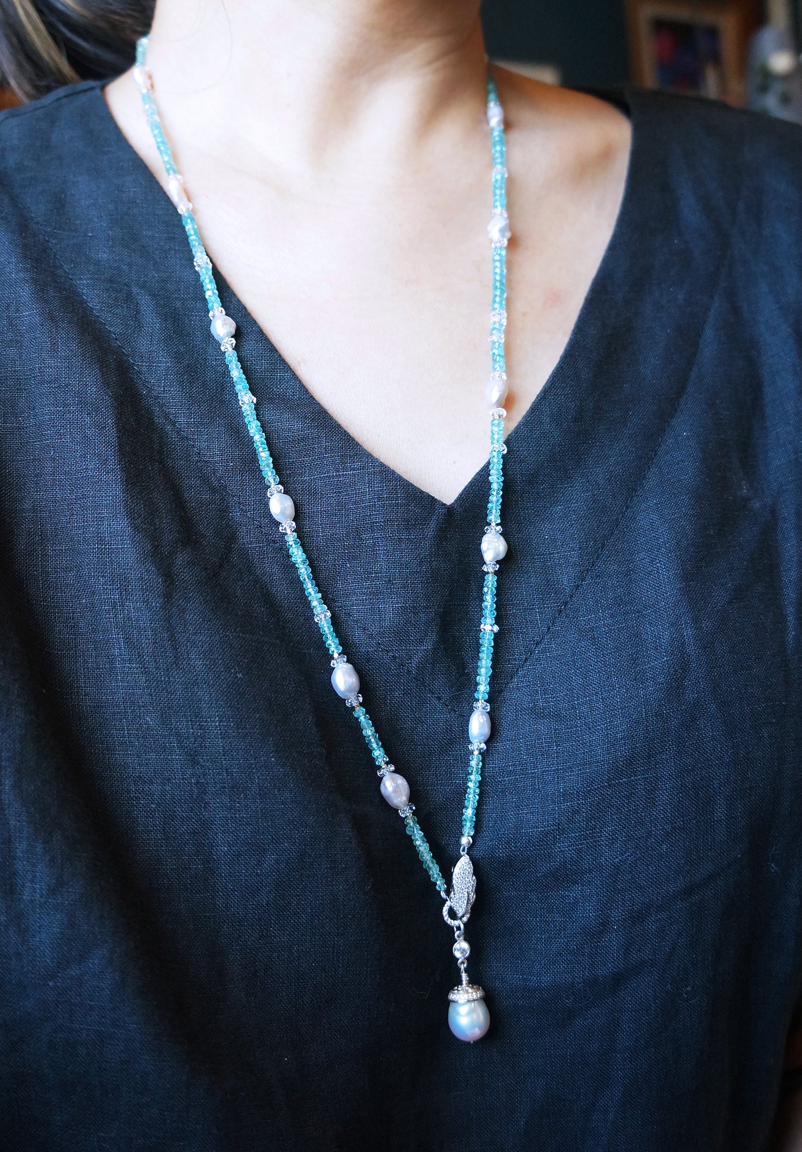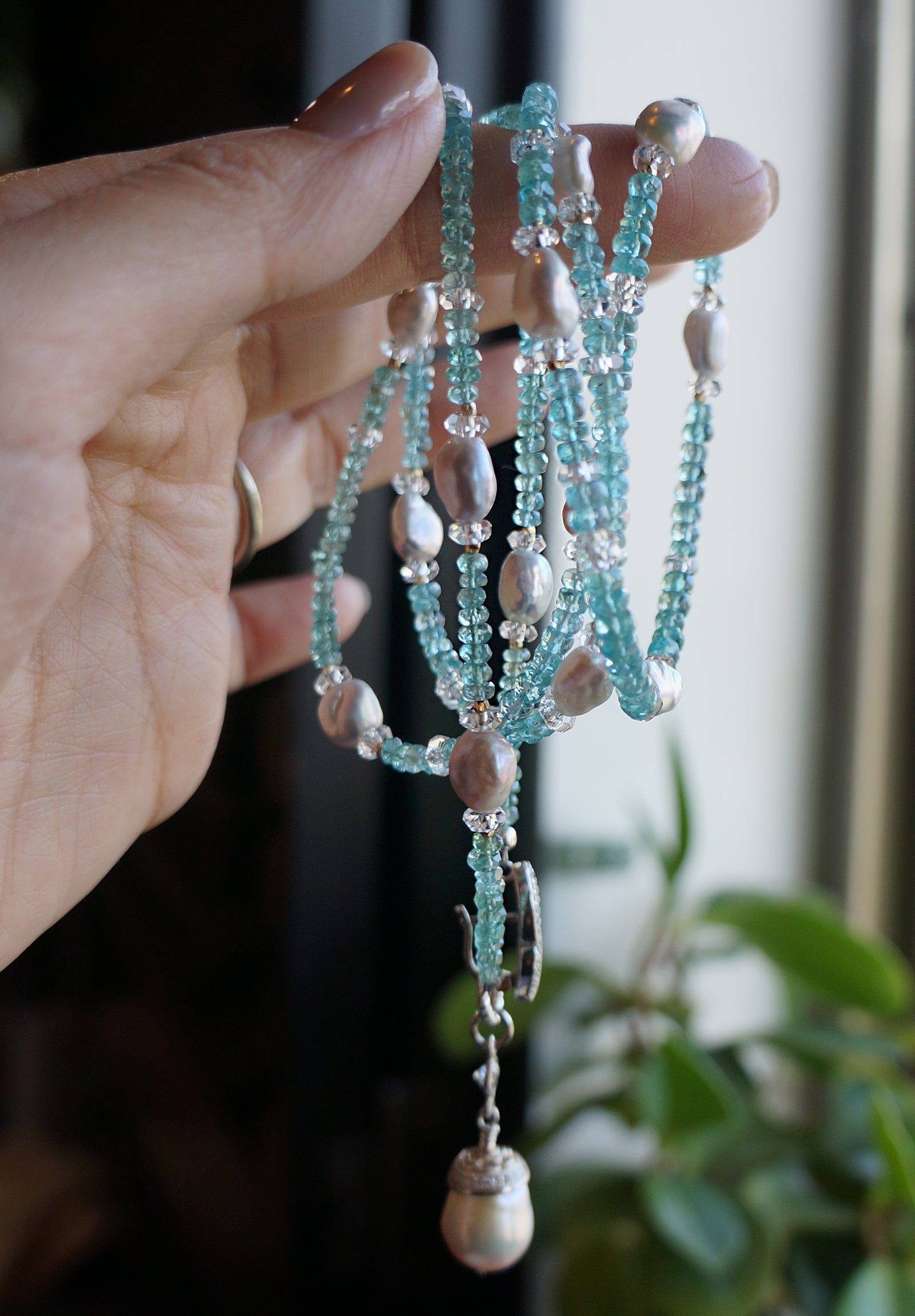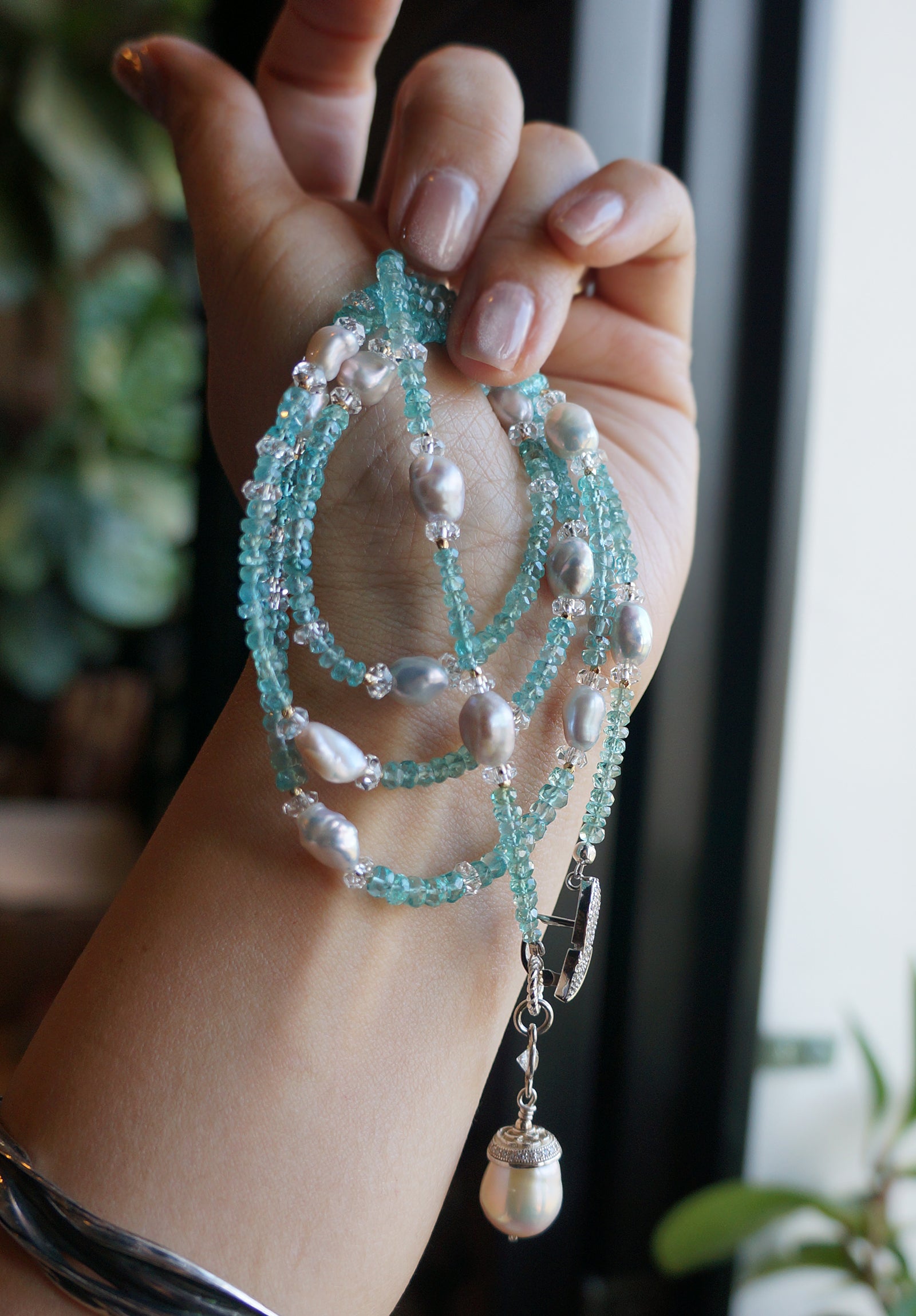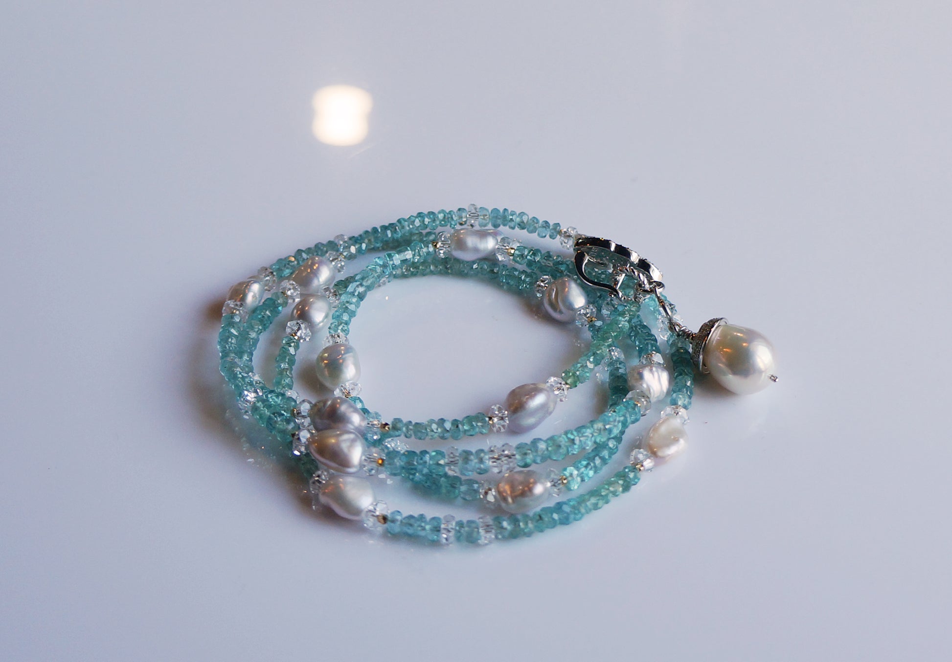 清爽的天空藍磷輝石加上典雅的珍珠,是一條讓人看著相當舒心的色調~