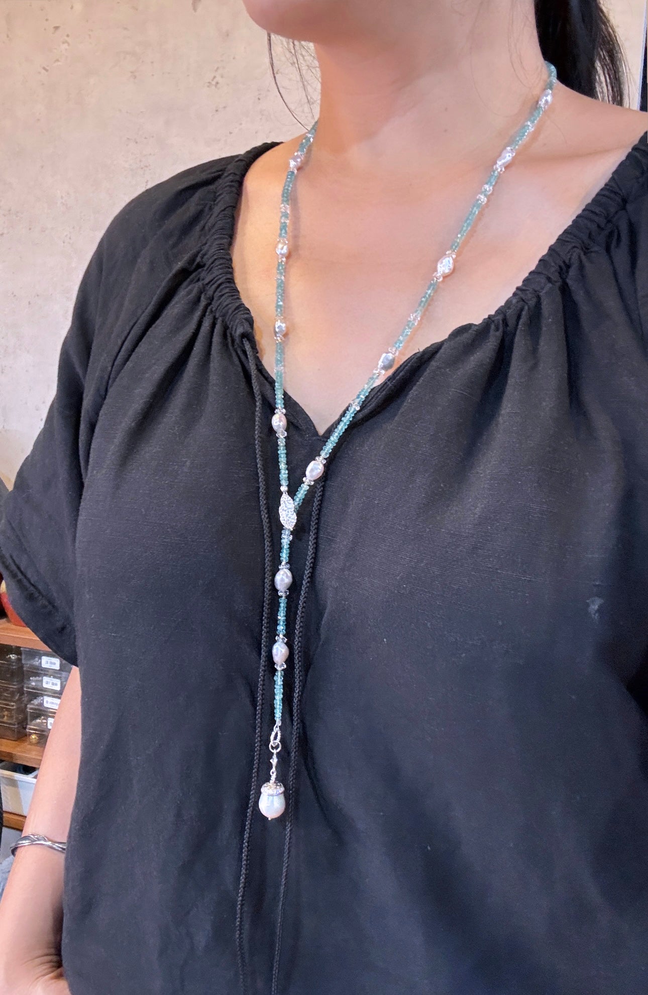 磷灰石/珍珠 多圈時尚 兩用長手鍊