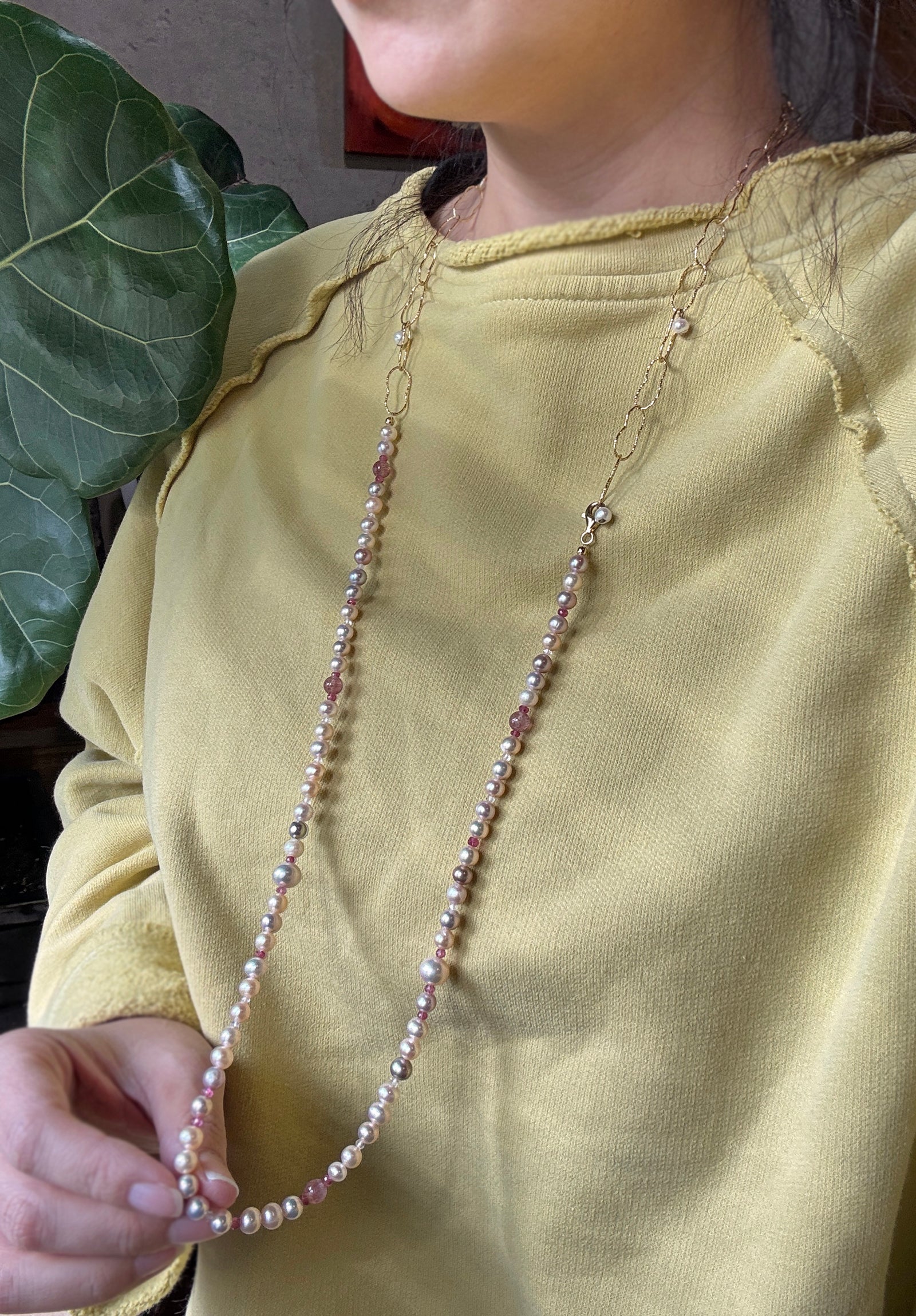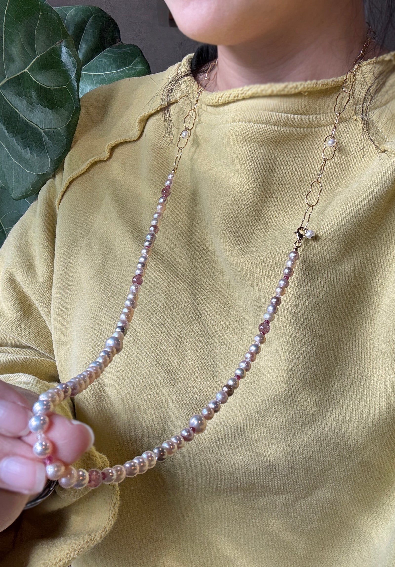 粉紫光|圓滿彩珠長短兩用項鍊 B111404