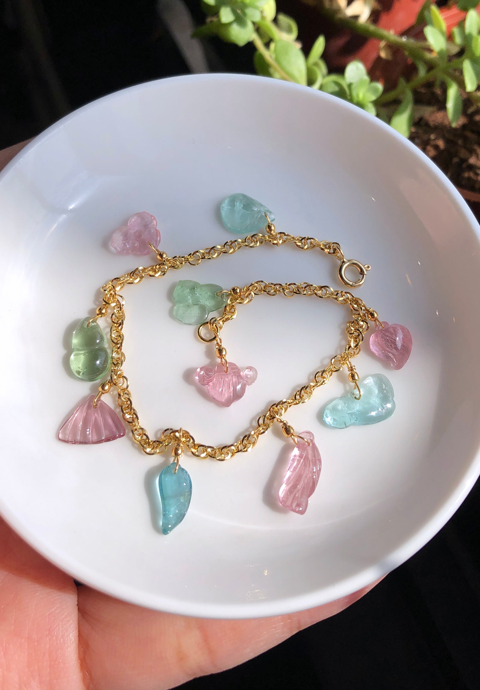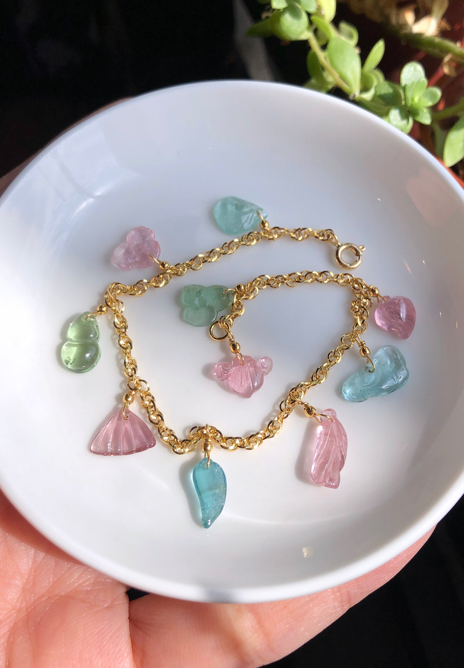 嬌嫩顏色的阿富汗碧璽,經過細膩雕刻