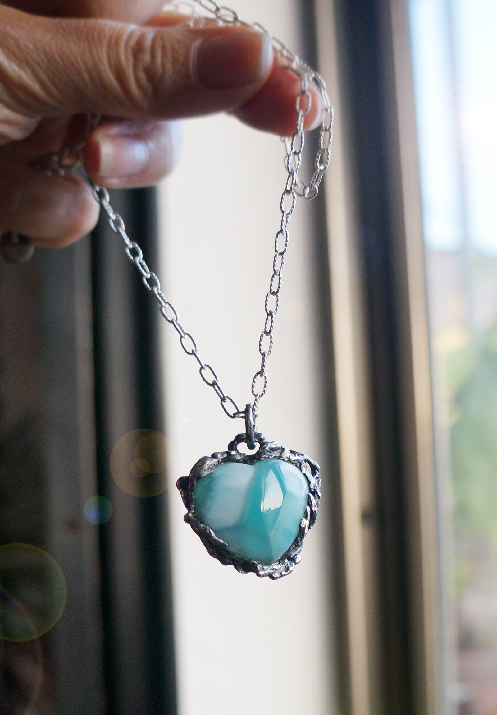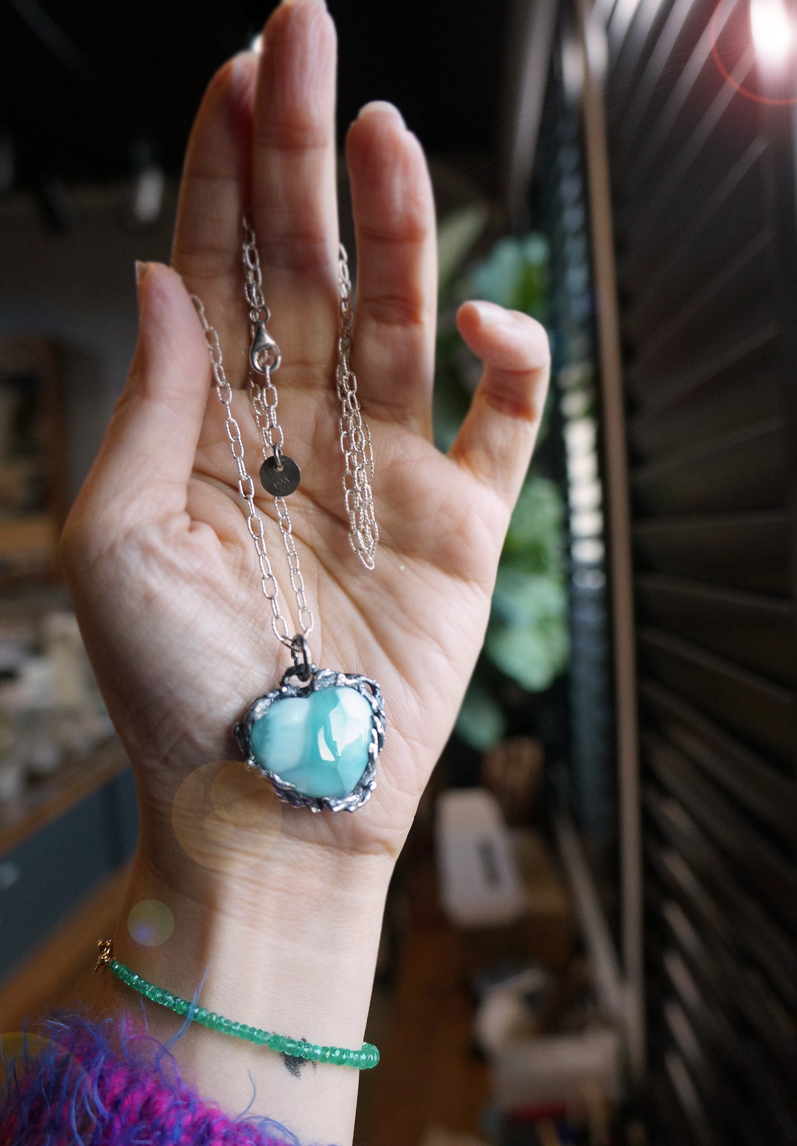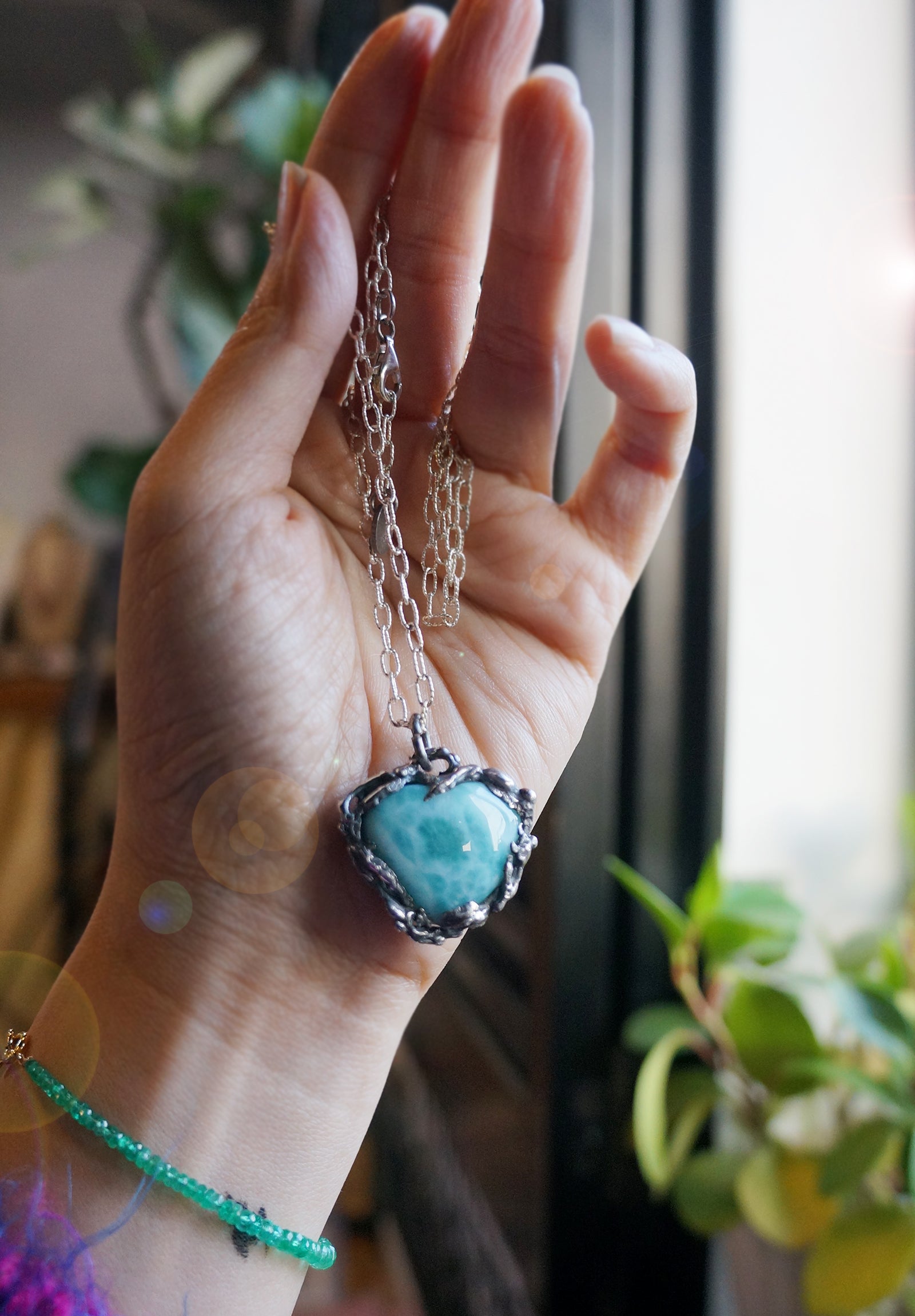 藍色拉利瑪・海洋之心 手工銀墜 C010902