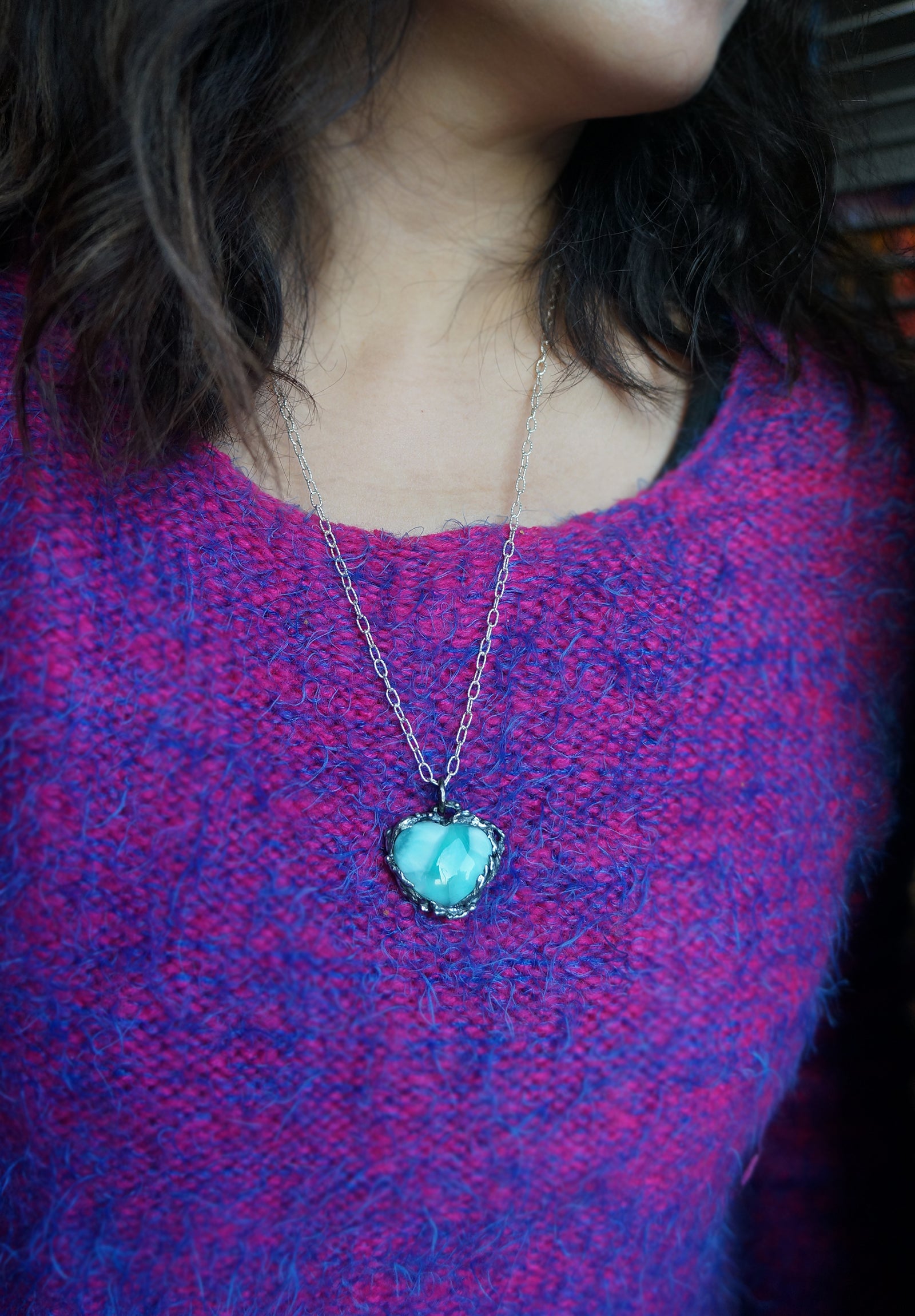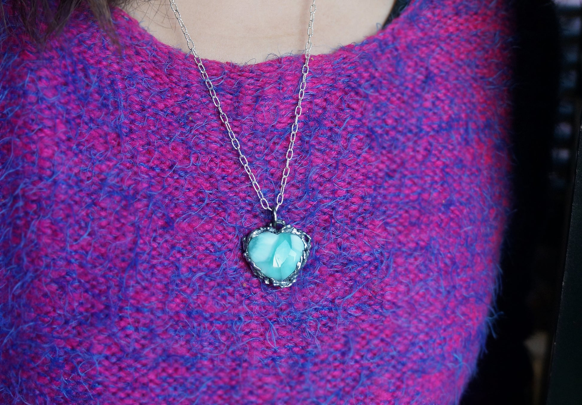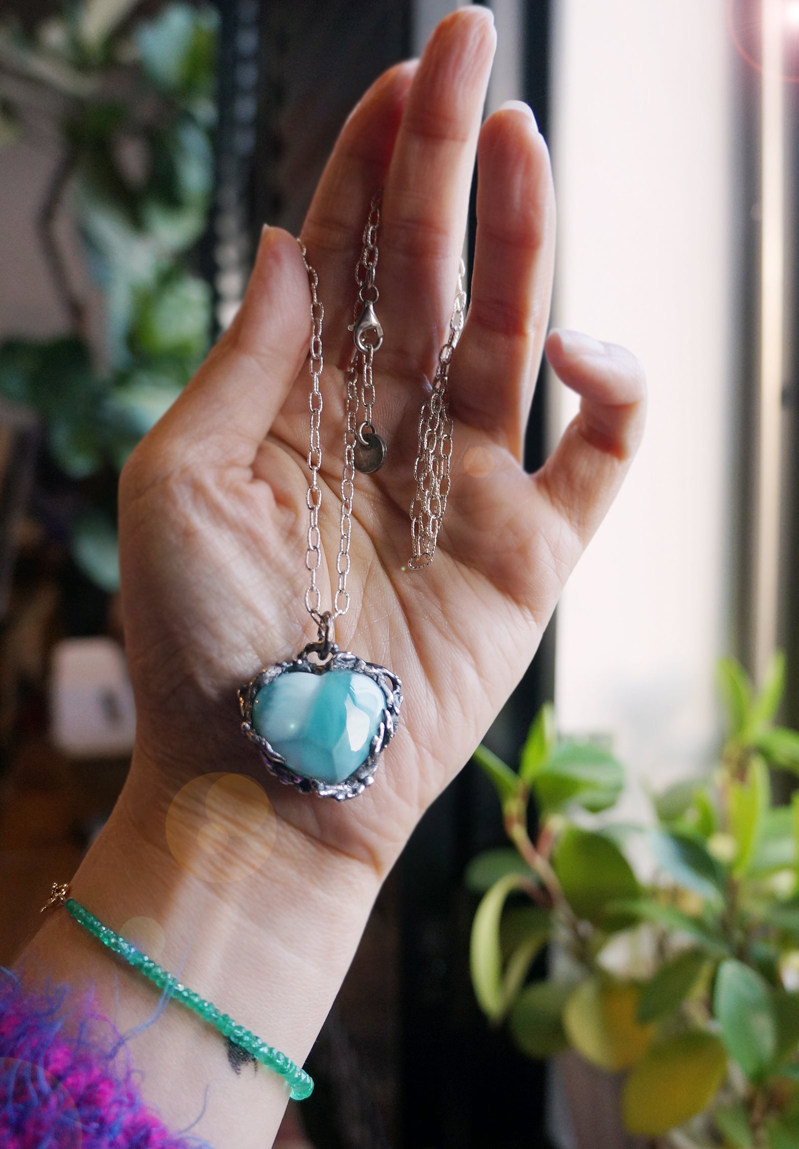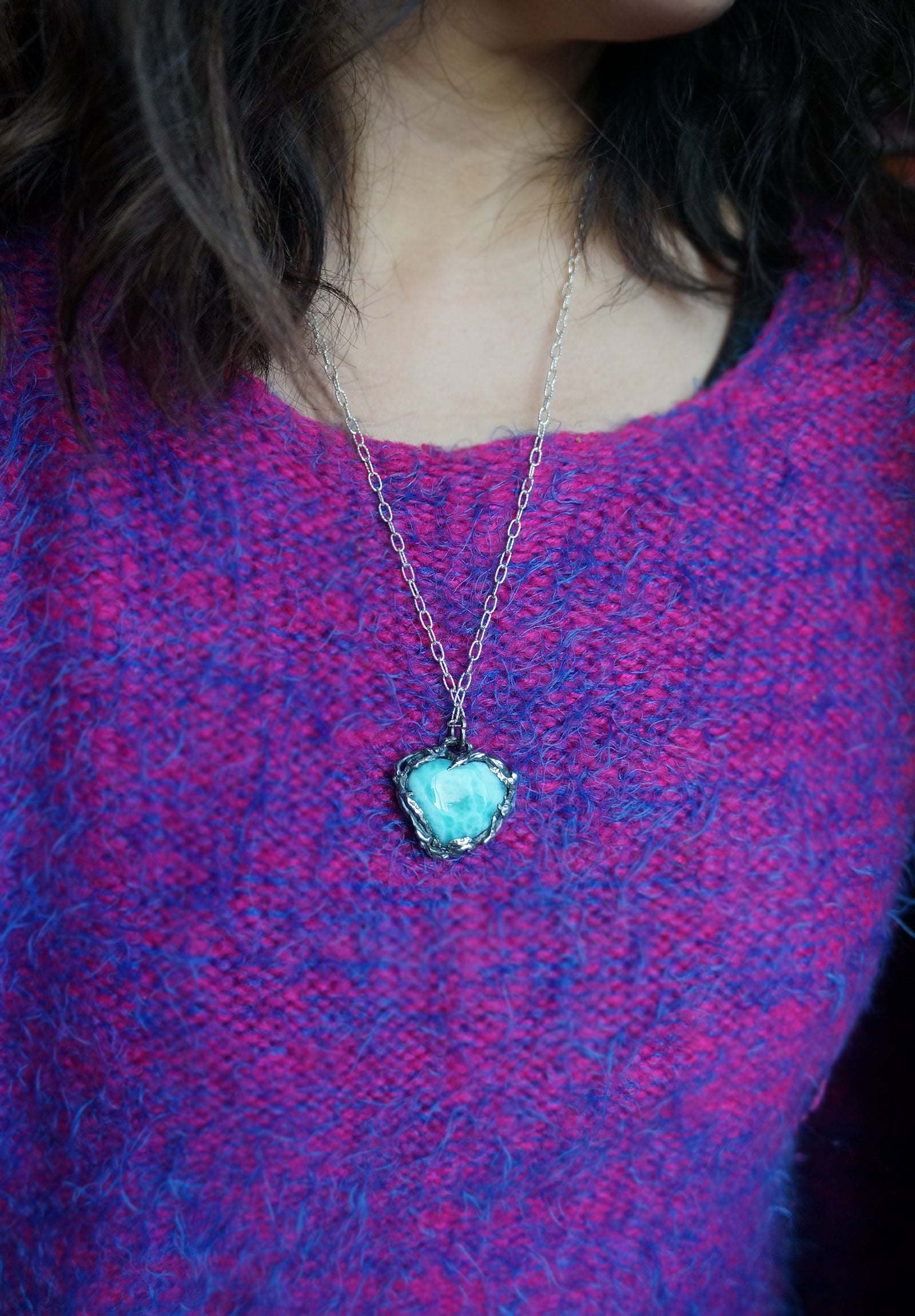 藍色拉利瑪・海洋之心 手工銀墜 C010902