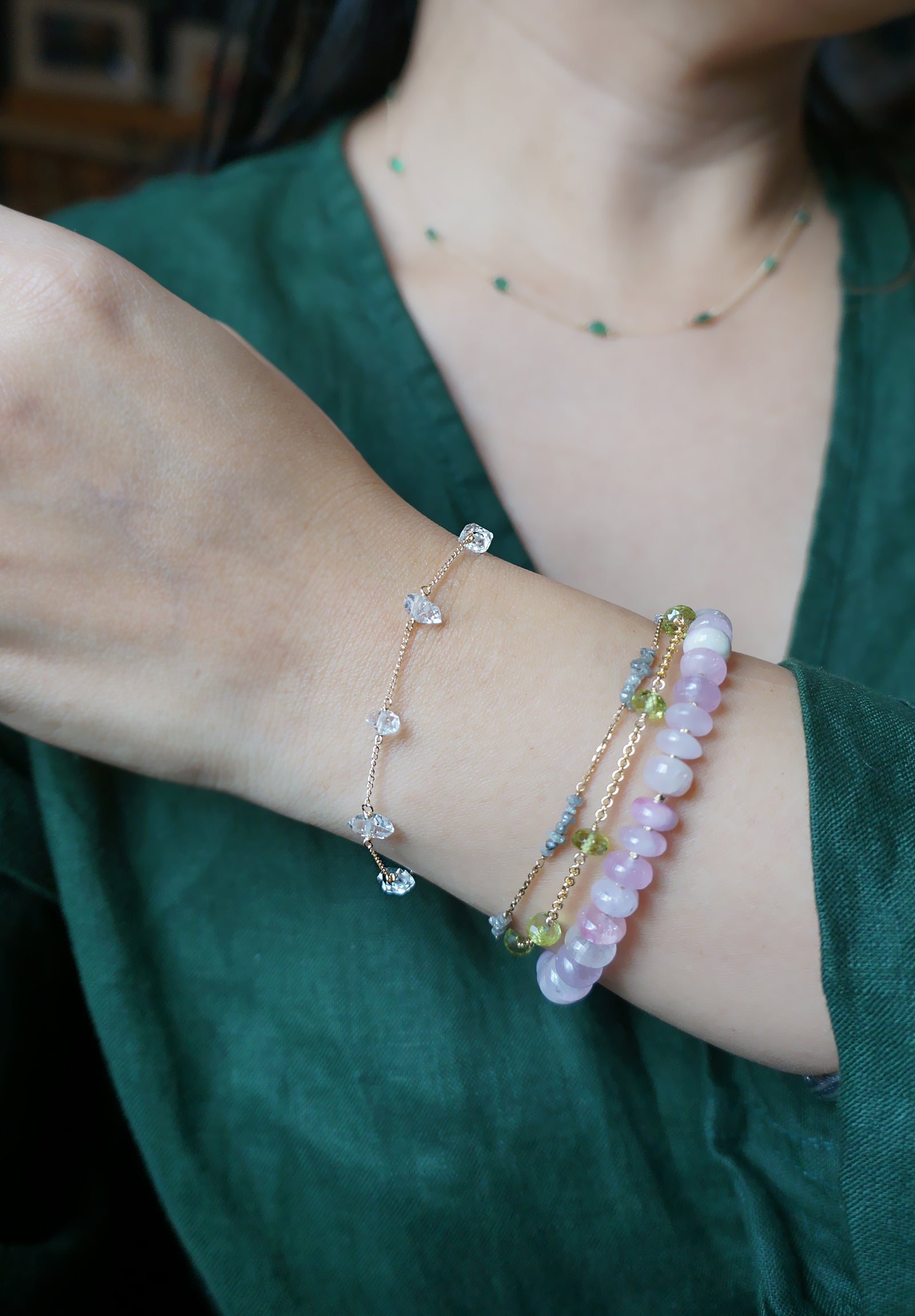 赫基蒙鑽石水晶| 14K注金手鏈 E121005