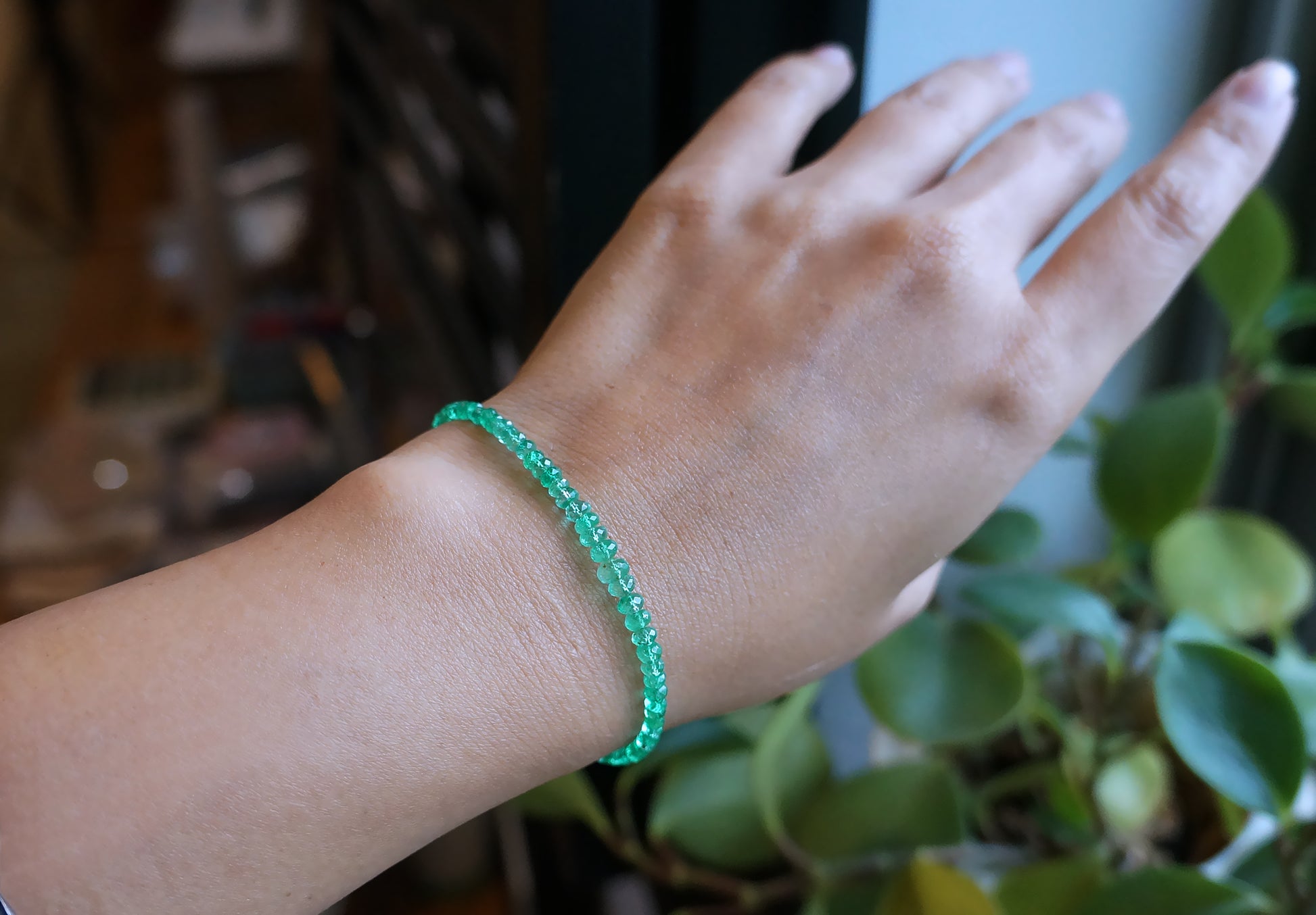 哥倫比亞祖母綠細切手鍊,閃亮的藍綠色