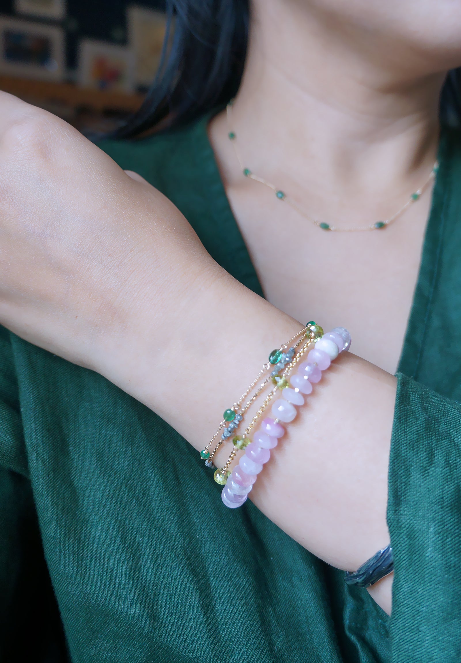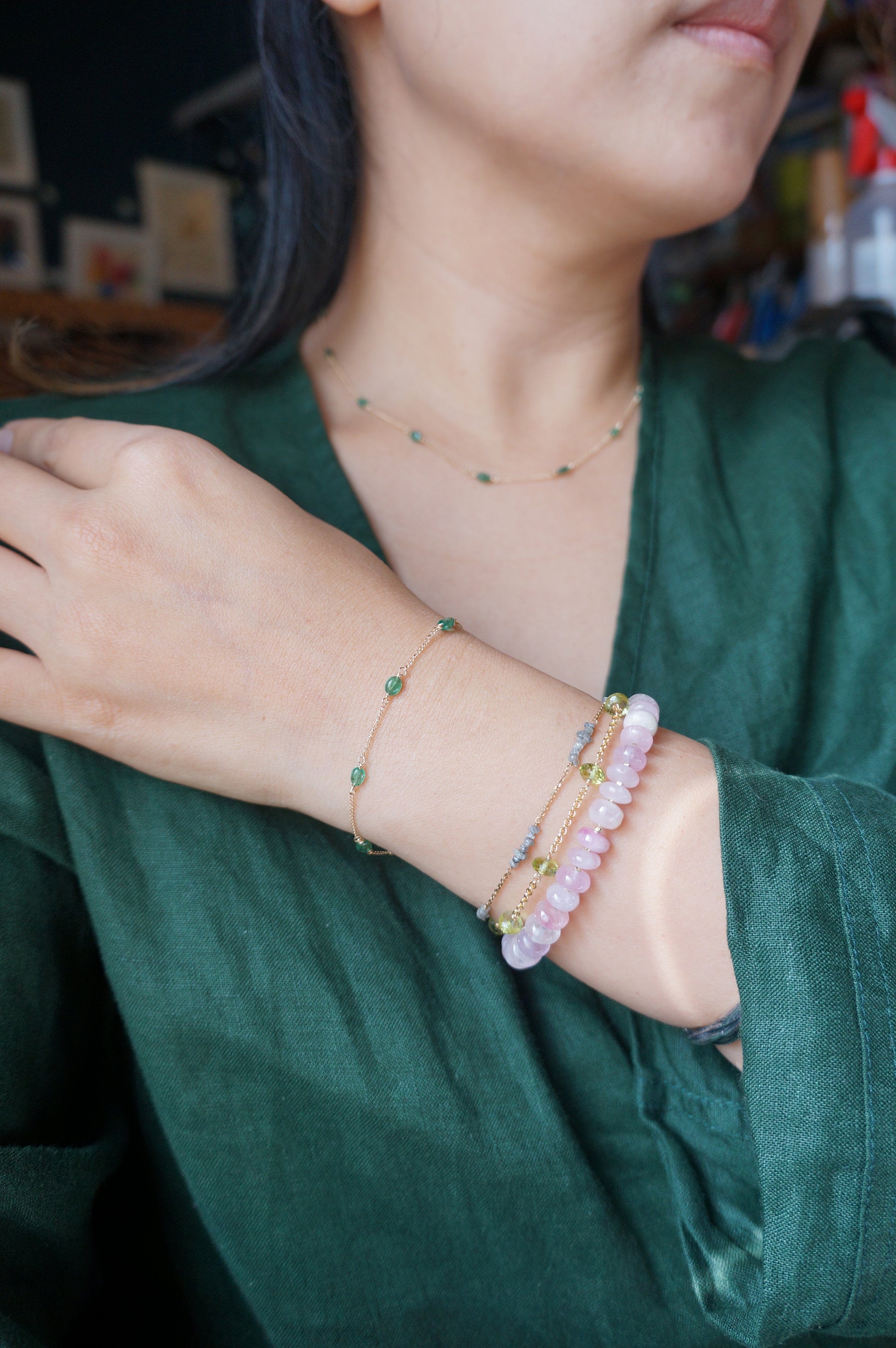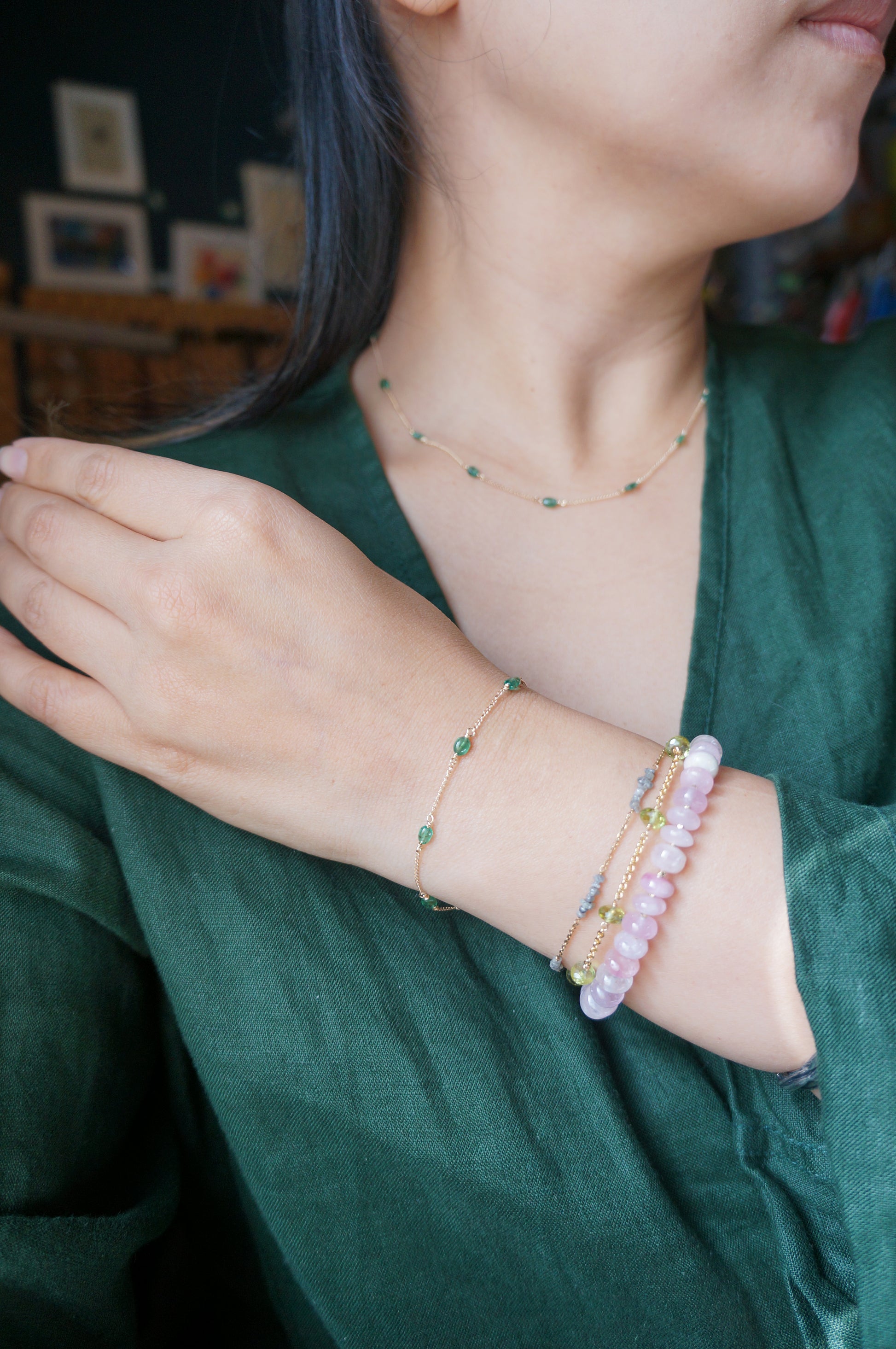 EMERALD|祖母綠14K注金手鏈 E121002