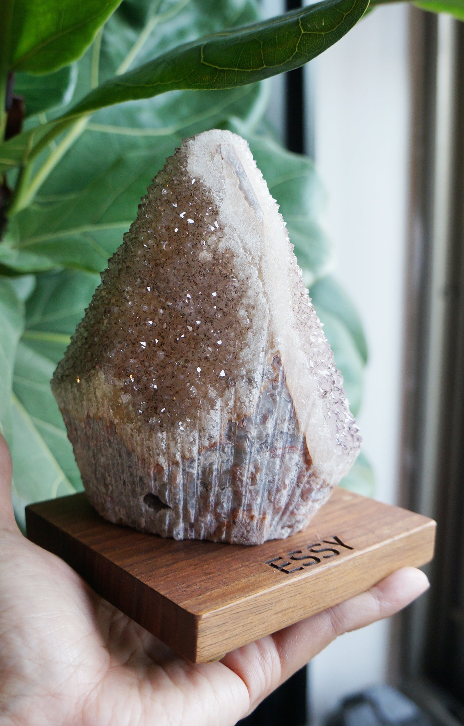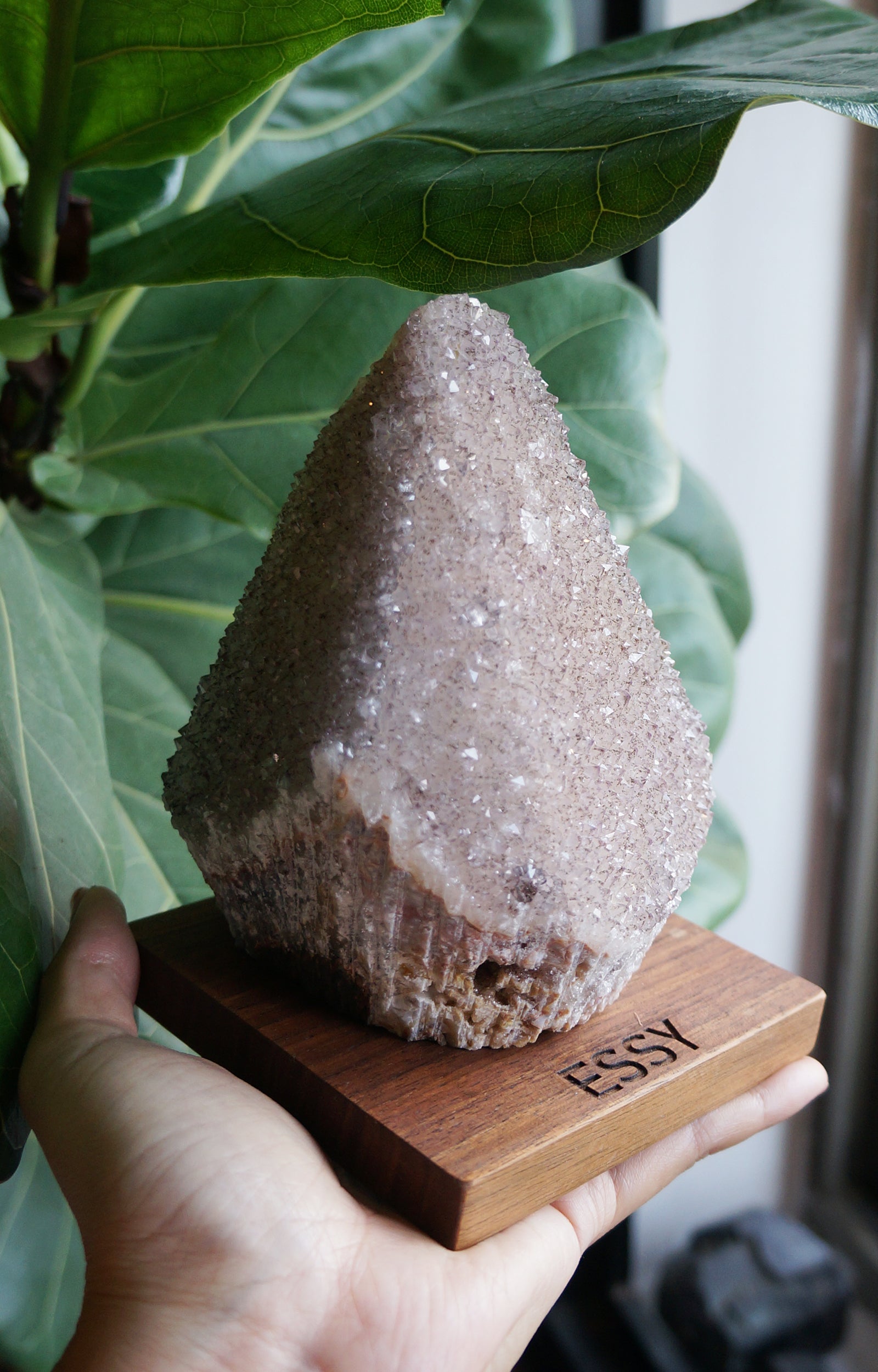 底部整體也是水晶礦石,略帶粉色與黃色,閃閃發亮。