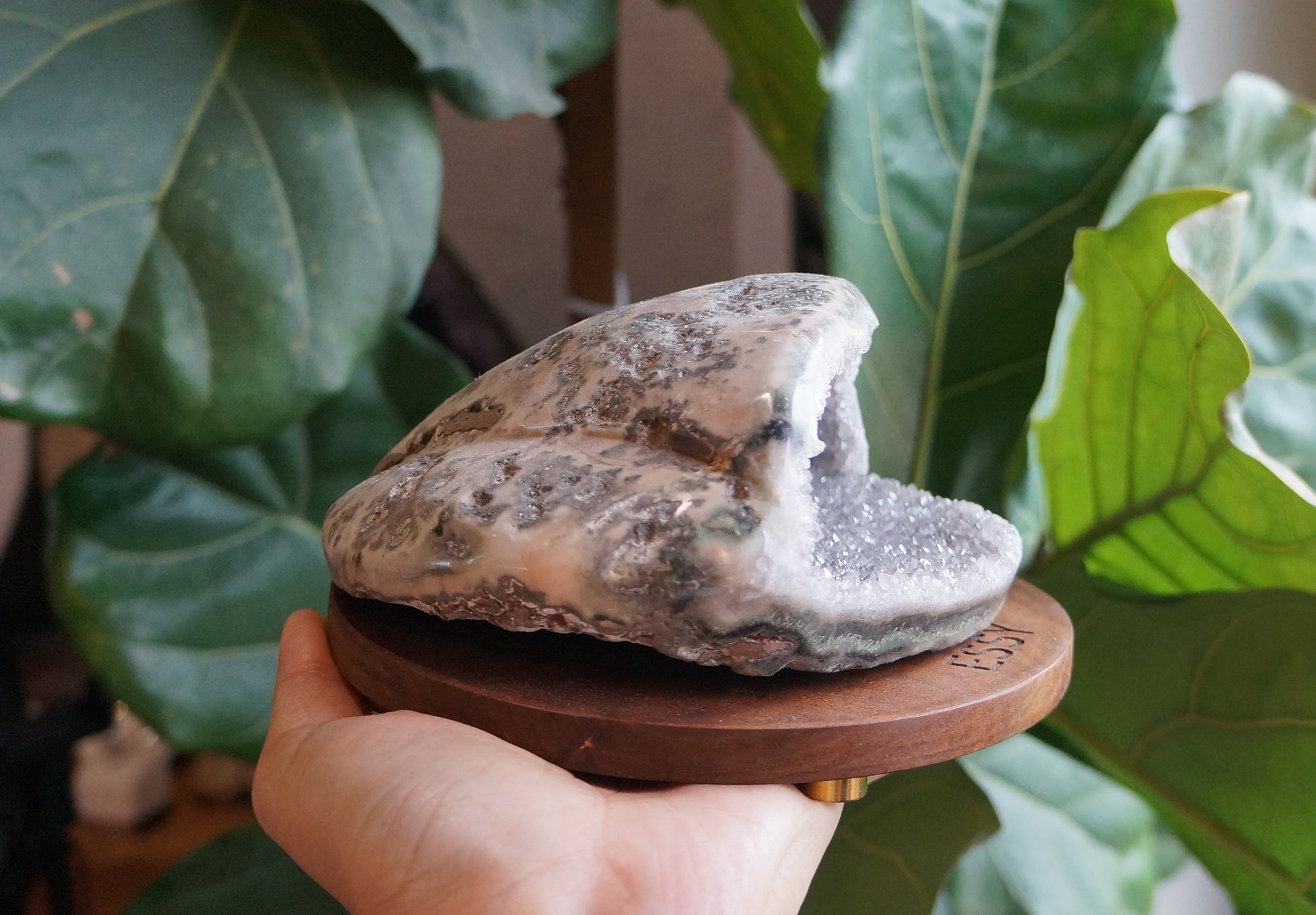 後方為瑪瑙水晶共生礦,微透光,極美!