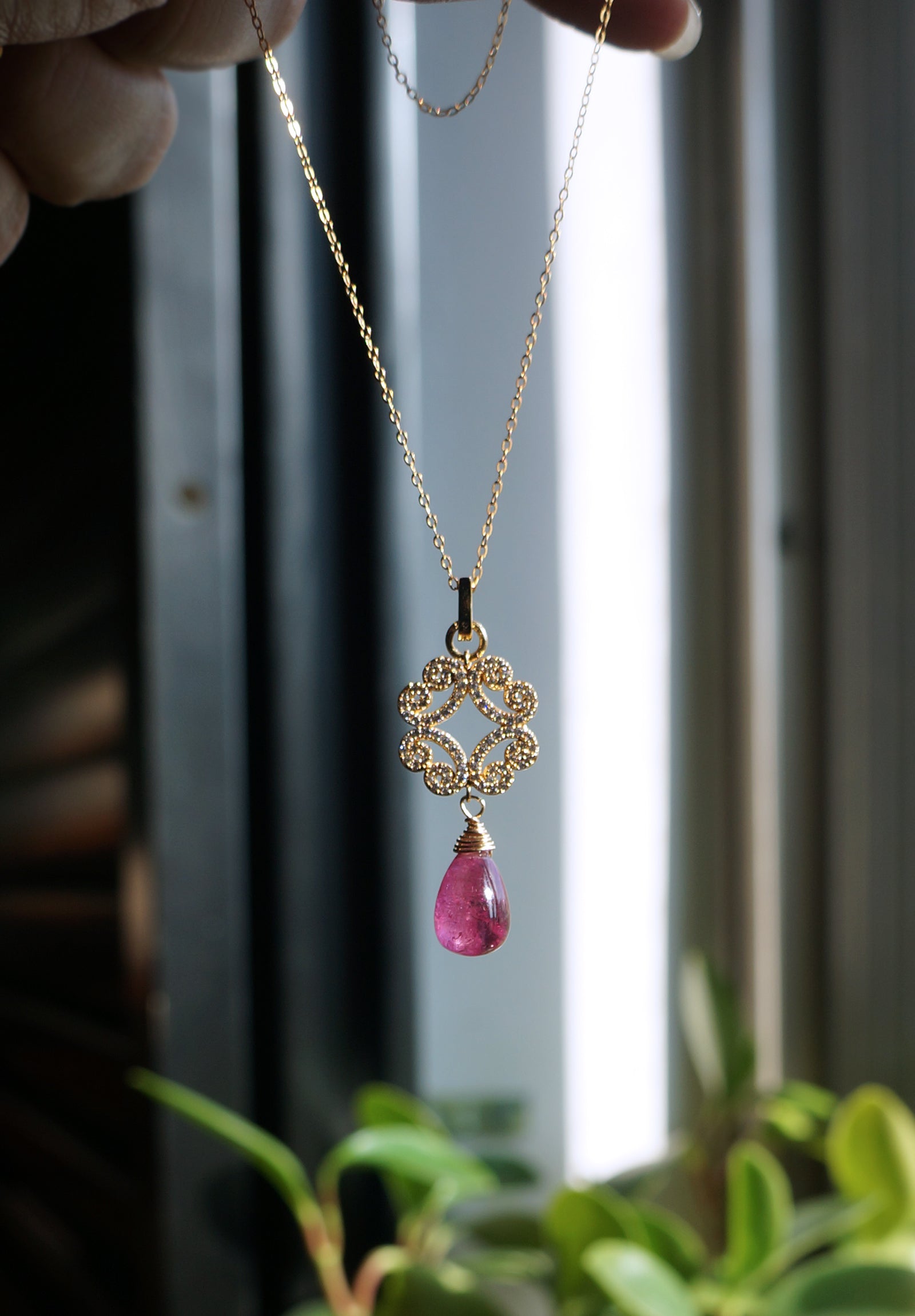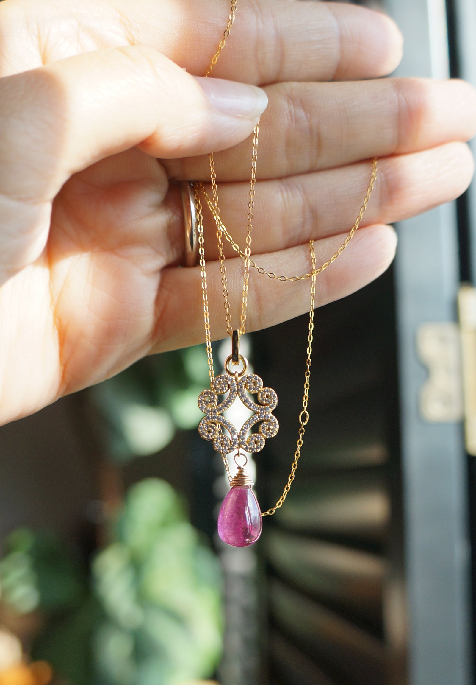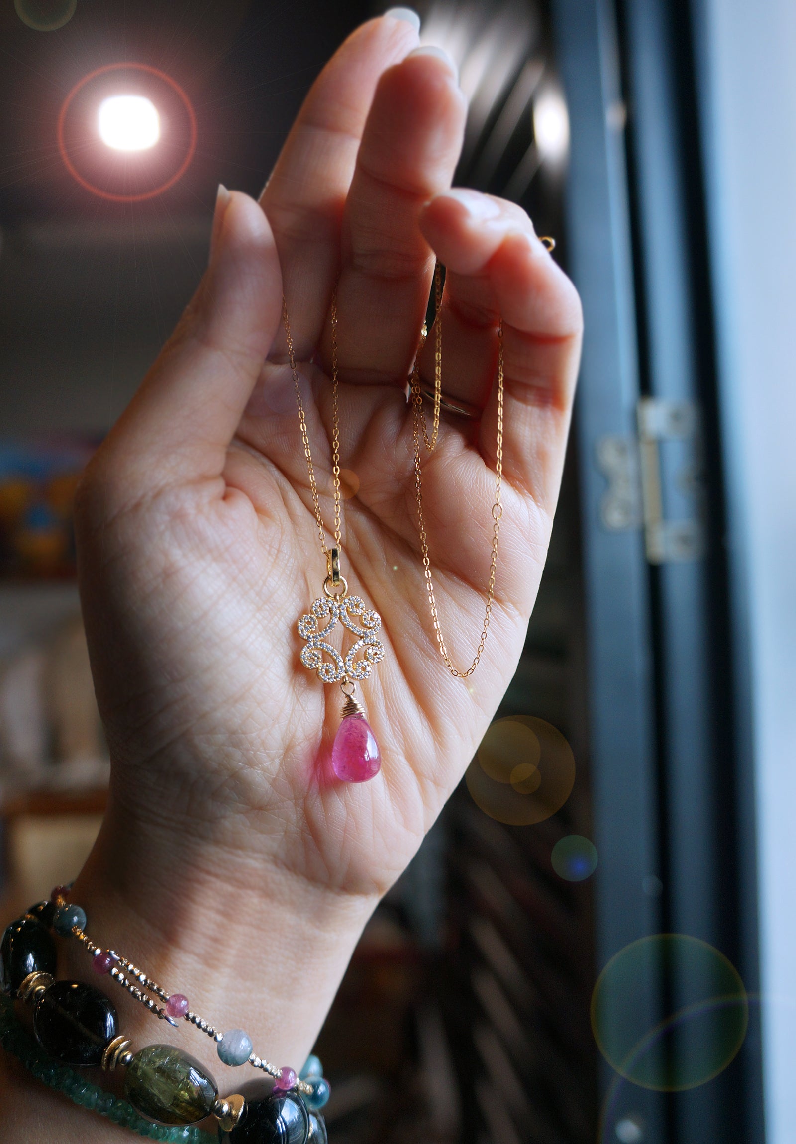 Rubellite | 桃紅碧璽鋯鑽 純銀鍍金墜 E121101