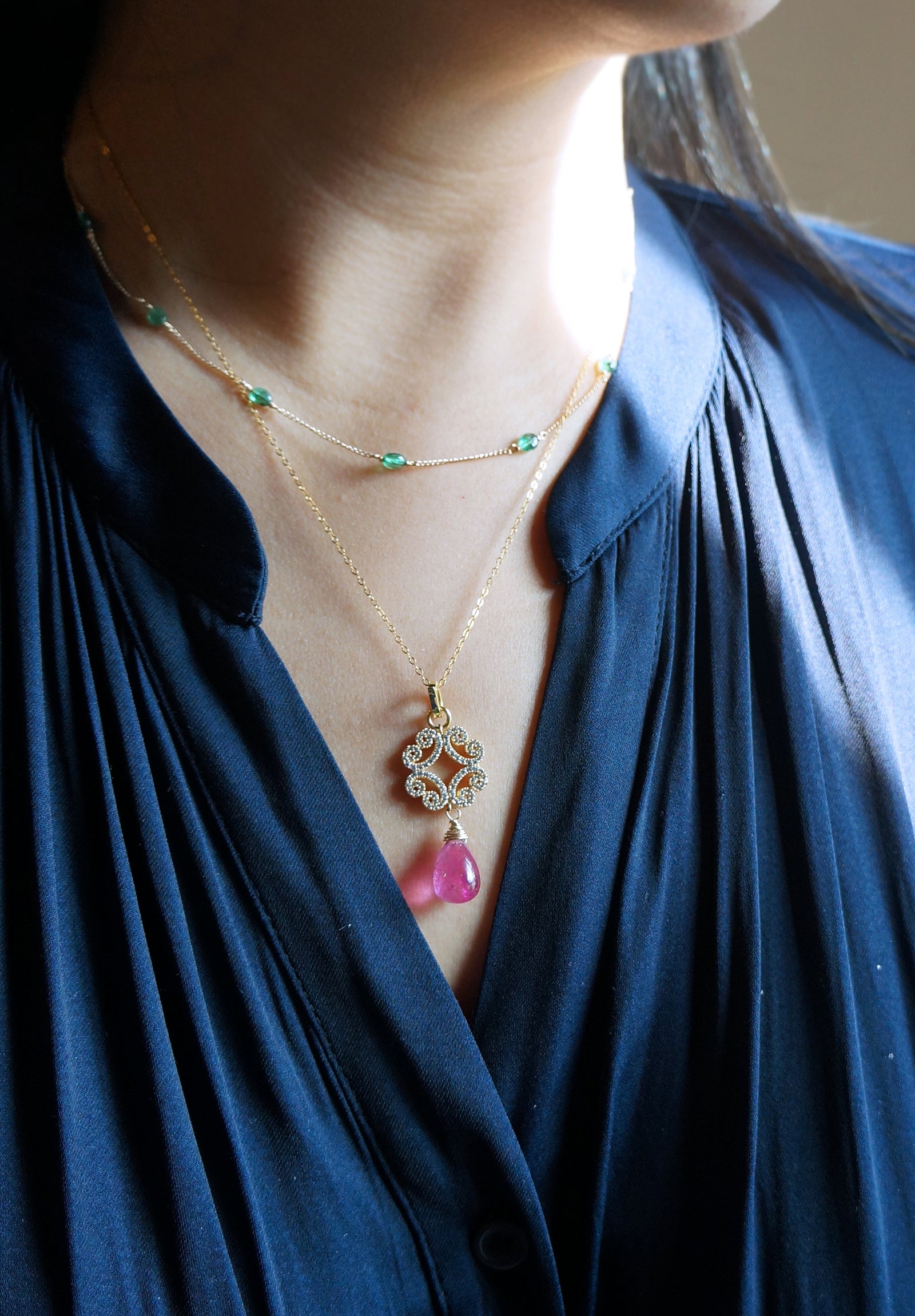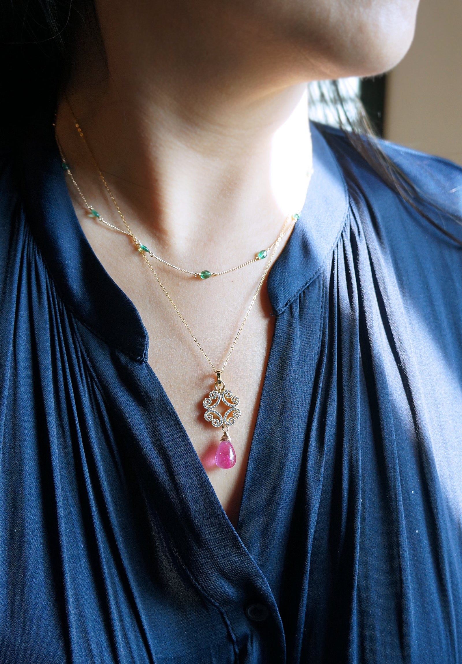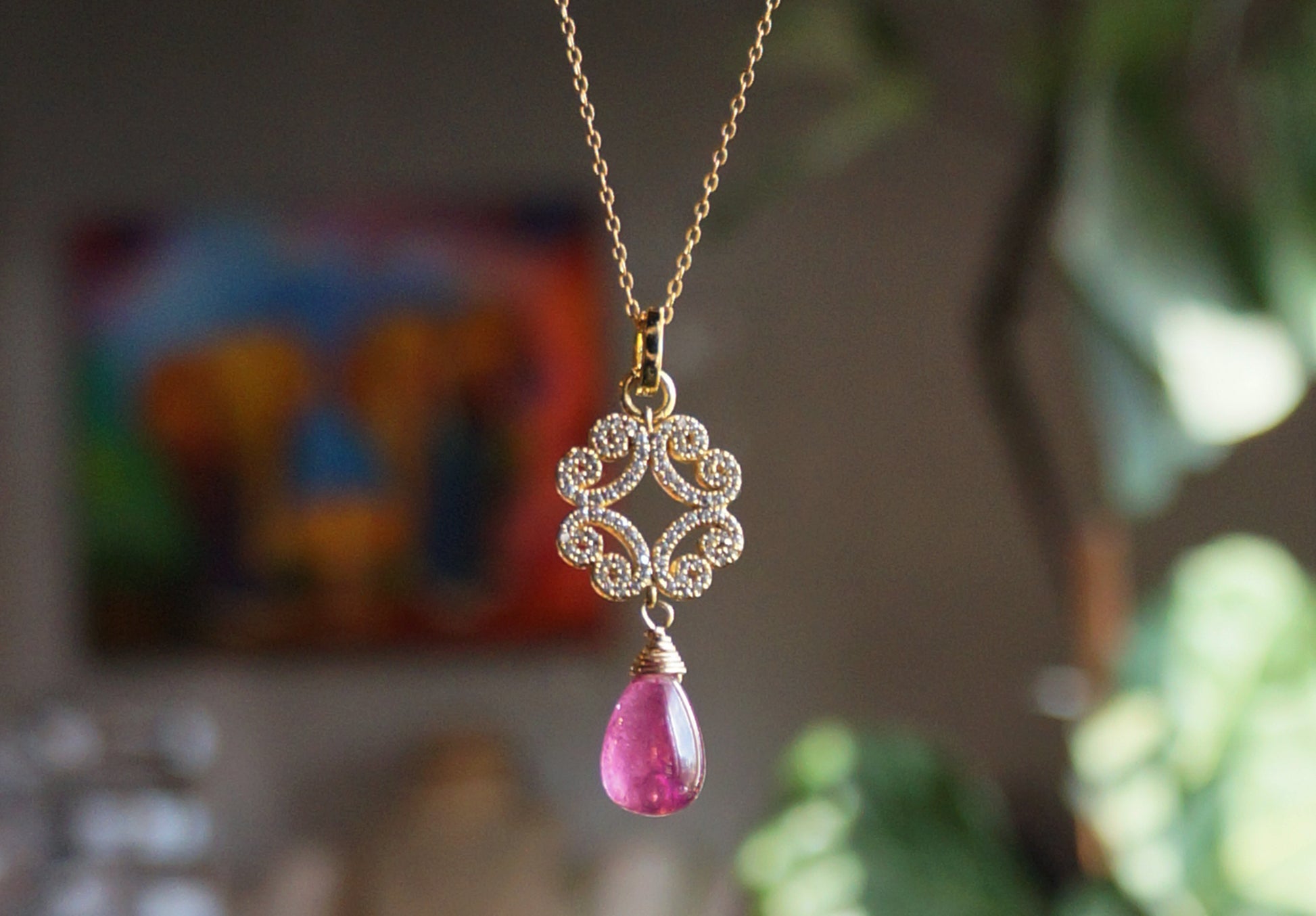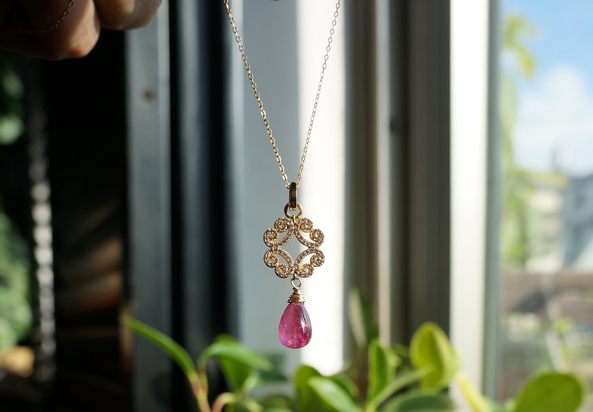Rubellite | 桃紅碧璽鋯鑽 純銀鍍金墜 E121101